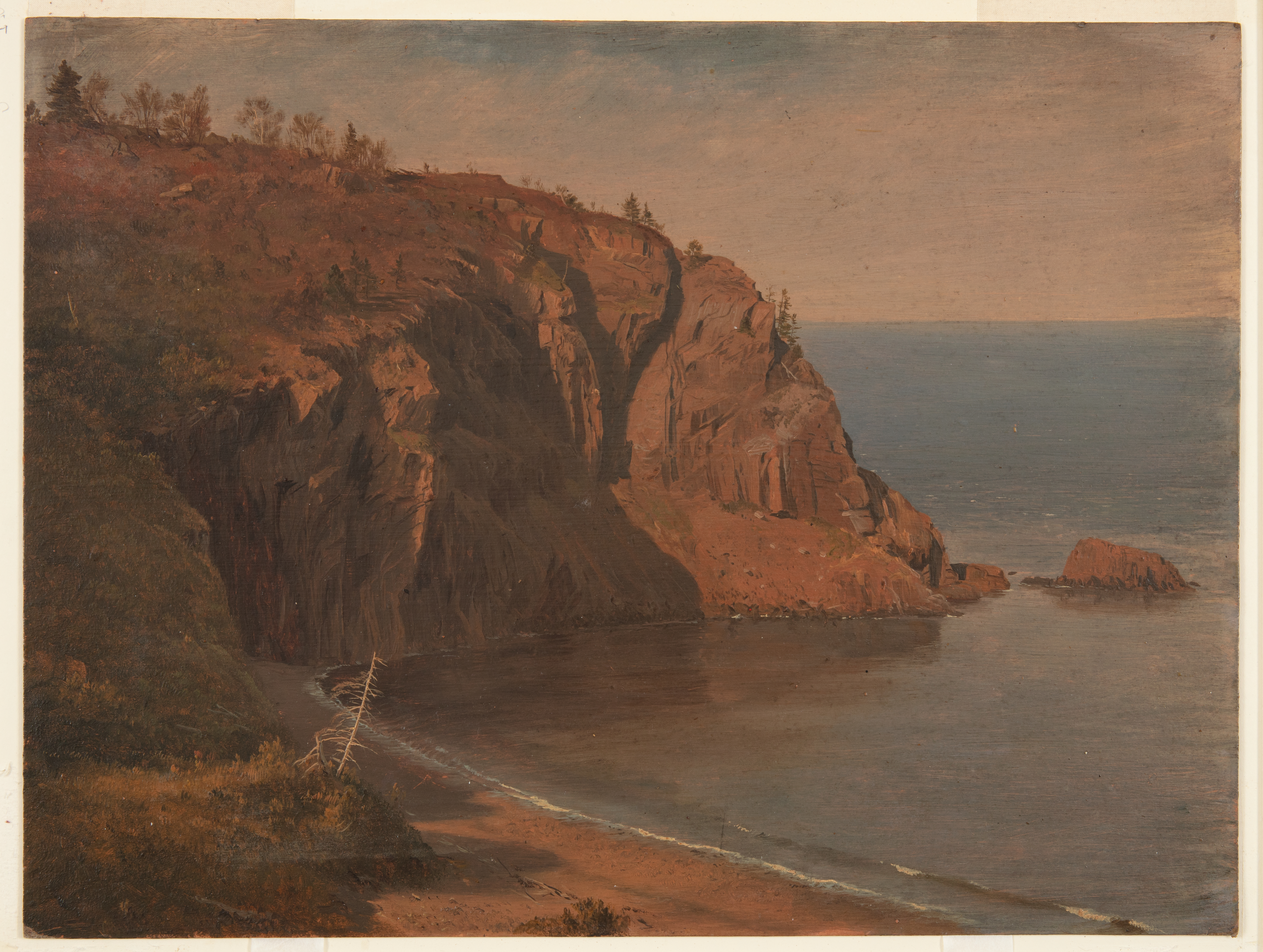 Drawing, Coast of Grand Manan Island, Canada; Frederic Edwin Church (American, 1826–1900); USA; oil and graphite on paperboard; 30.8 × 40.7 cm (12 1/8 × 16 in.); Gift of Louis P. Church; 1917-4-649-a
