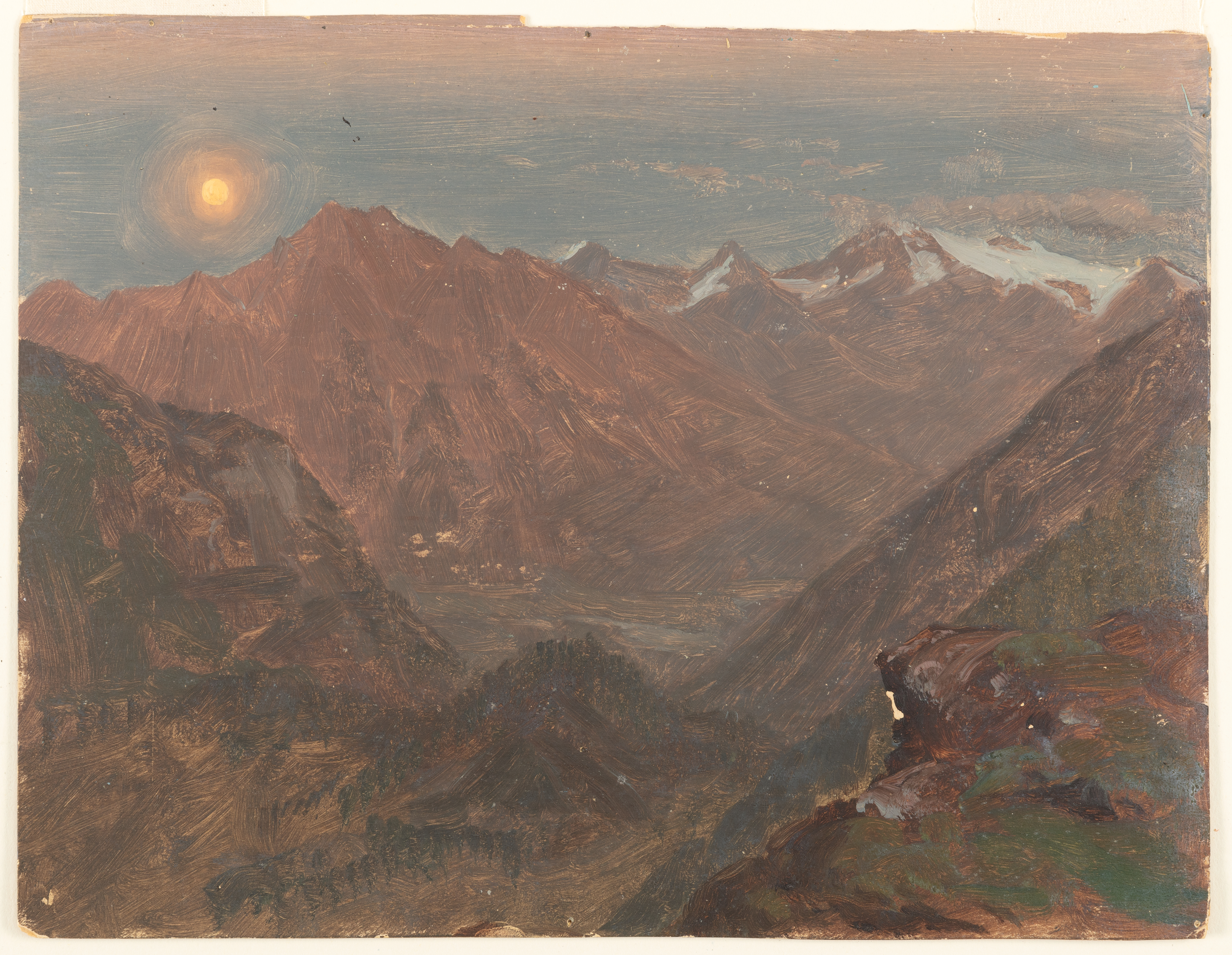 Drawing, Moonlight over the Alps; Frederic Edwin Church (American, 1826–1900); USA; oil and graphite on paperboard; 23.1 × 29.9 cm (9 1/8 × 11 3/4 in.); Gift of Louis P. Church; 1917-4-670-c