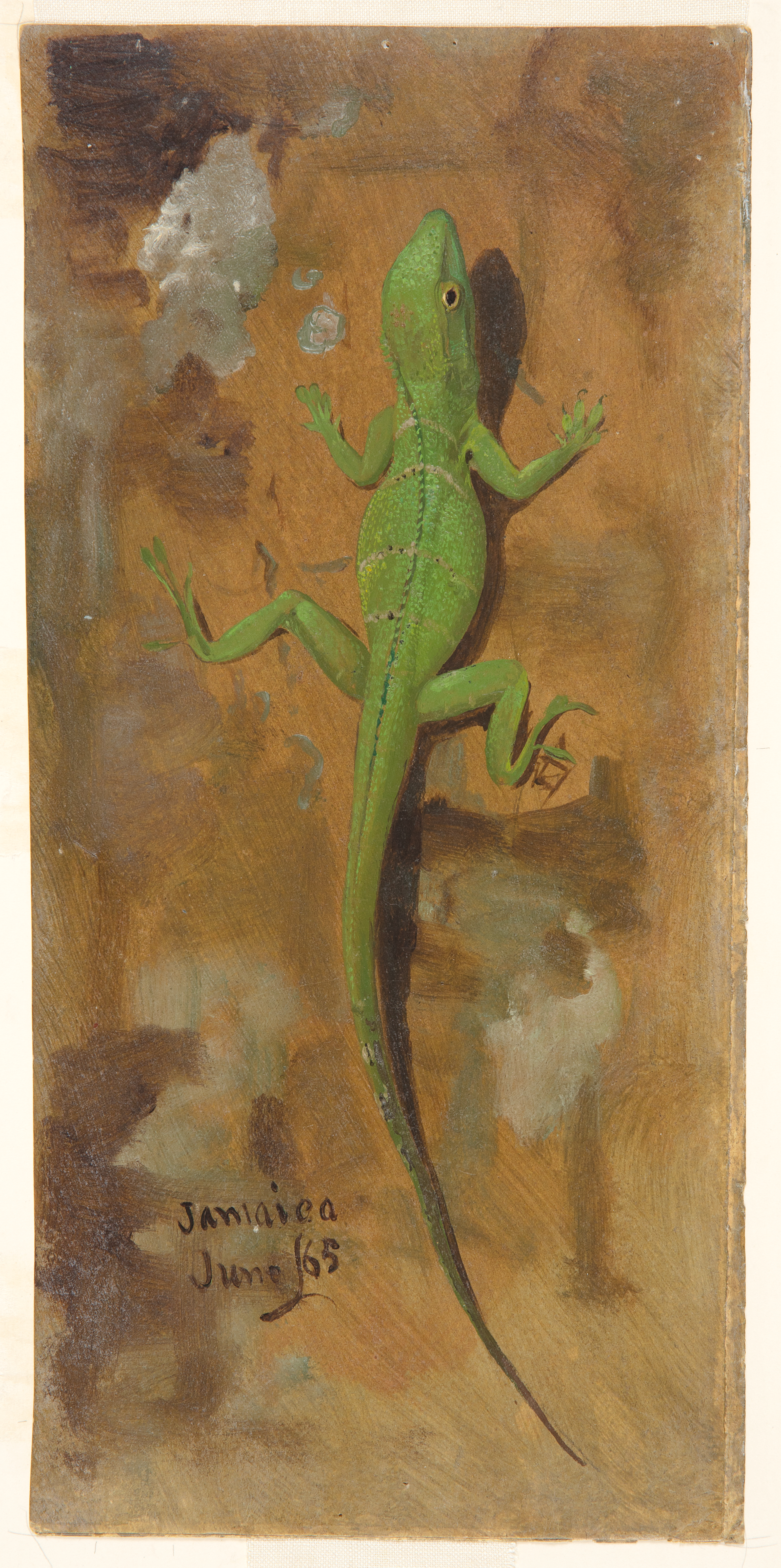 Drawing, A Lizard, Jamaica; Frederic Edwin Church (American, 1826–1900); USA; brush and oil, graphite on paperboard; 30.5 × 14.8 cm (12 × 5 13/16 in.); Gift of Louis P. Church; 1917-4-712-b