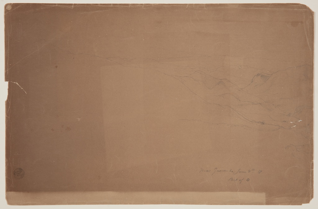 Drawing, Landscape near Guaranda, Ecuador; Frederic Edwin Church (American, 1826–1900); Ecuador; graphite, brush and white gouache on tan wove paper; 36.1 × 54.9 cm (14 3/16 × 21 5/8 in.); Gift of Louis P. Church; 1917-4-719-b