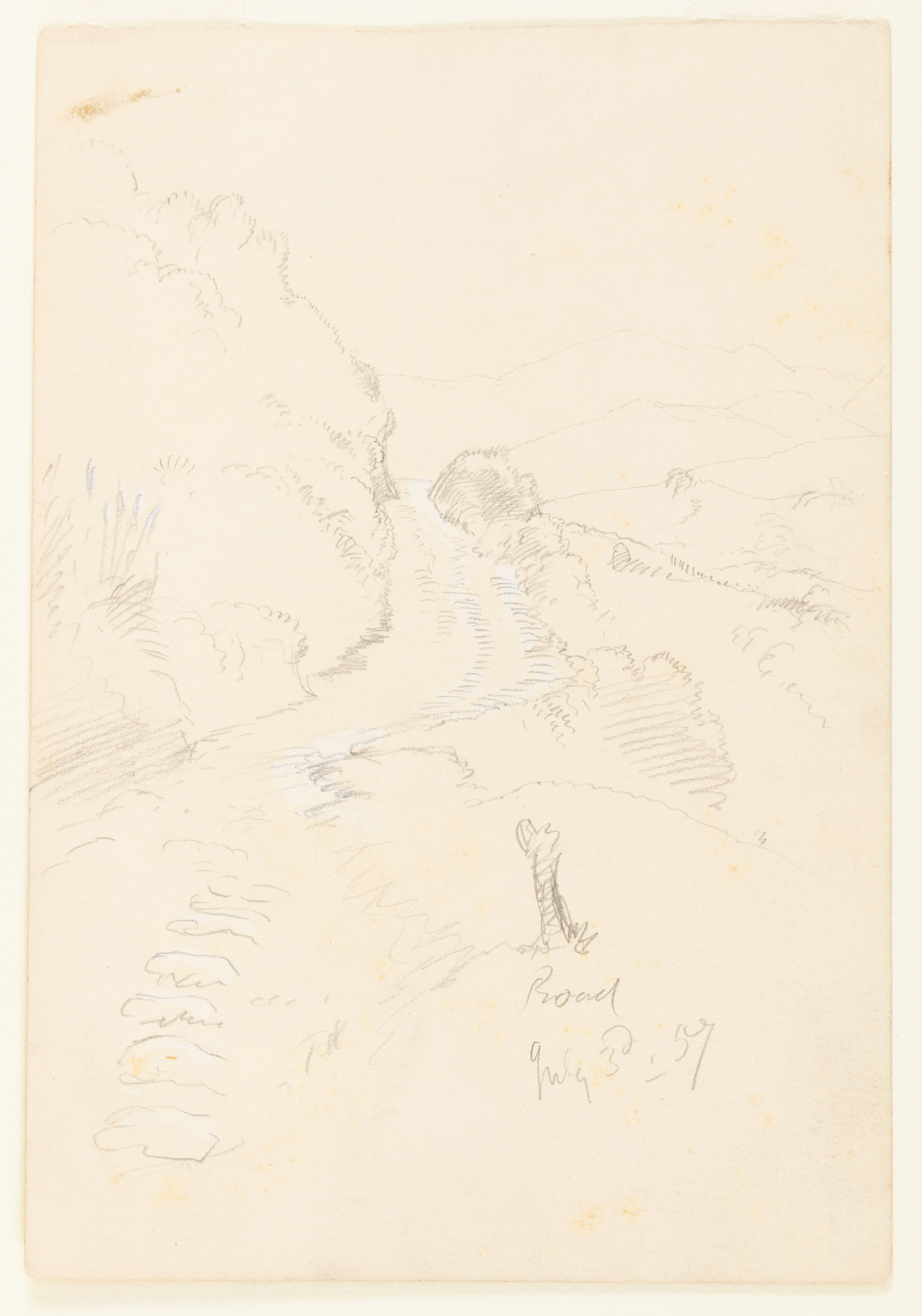 Drawing, Road in Ecuador; Frederic Edwin Church (American, 1826–1900); USA; graphite on thin, off-white paperboard; 25.6 × 17.7 cm (10 1/16 × 6 15/16 in.); Gift of Louis P. Church; 1917-4-741