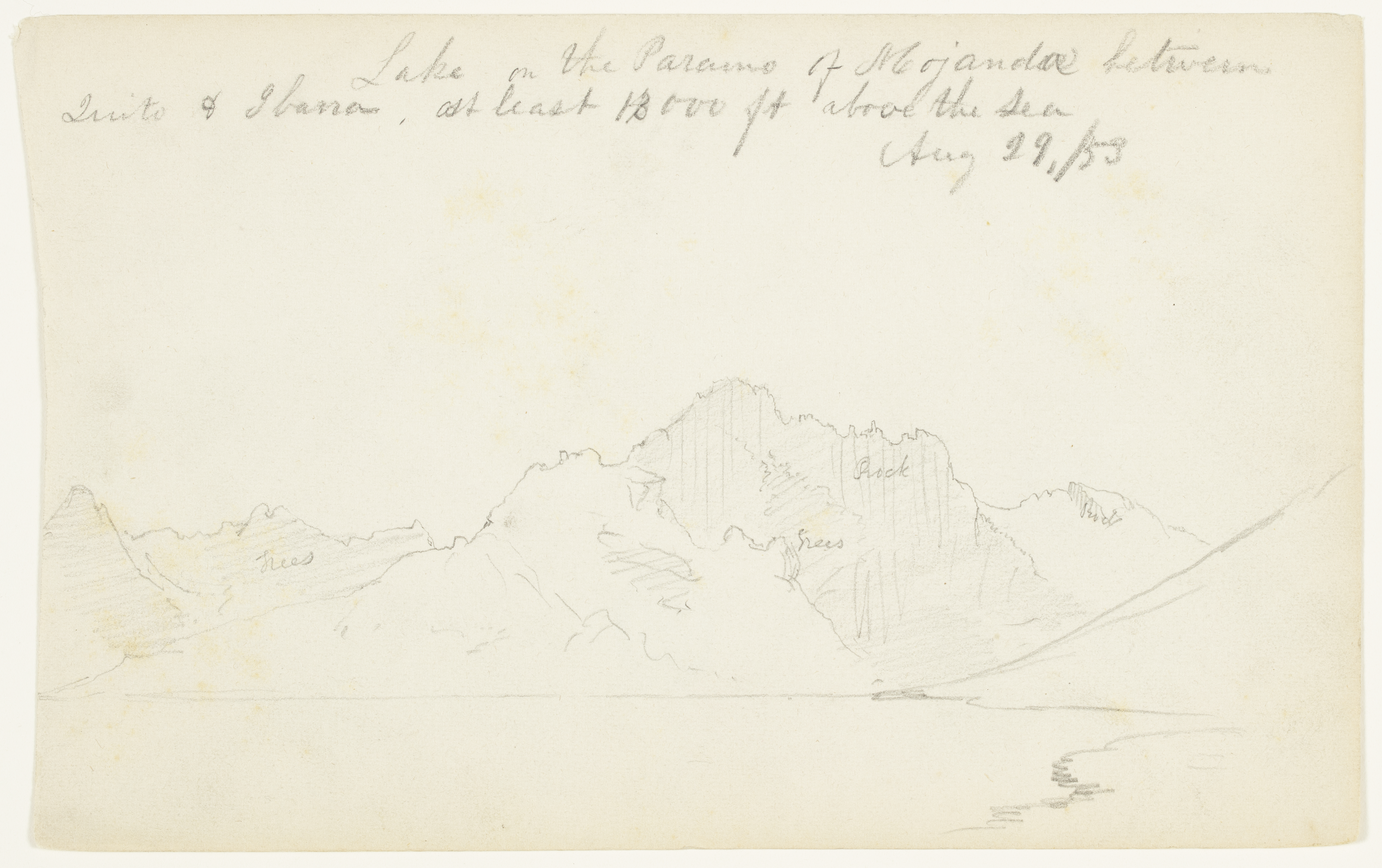 Inscribed: in graphite, upper margin: Lake on the Paramo of Mojanda between / Quito & Ibarra, at least 13,000 ft above the sea / Aug 29, /53