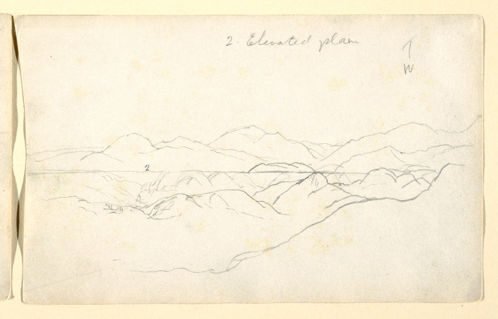 Inscribed: in graphite, upper right: 2 – Elevated plain / [arrow pointing up] W; in graphite, center: 2