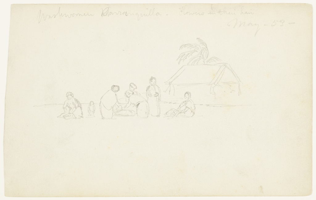 Inscribed: in graphite, upper margin: Washwomen Barranquilla. Flowers in their hair / May -53-