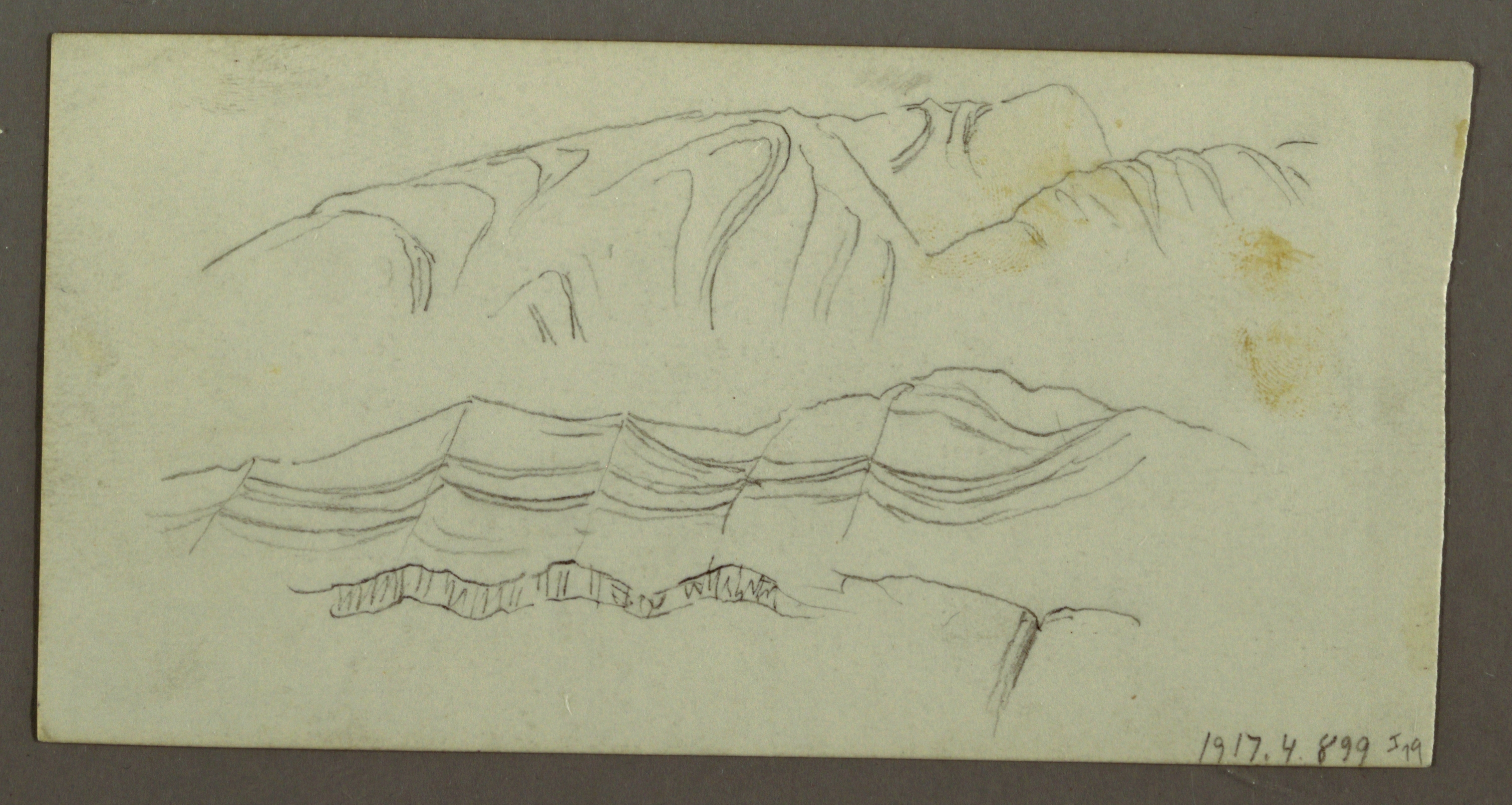 Drawing, Landscape Study, Syria; Frederic Edwin Church (American, 1826–1900); USA; graphite on white wove paper; 8.6 × 17.2 cm (3 3/8 × 6 3/4 in.); Gift of Louis P. Church; 1917-4-899