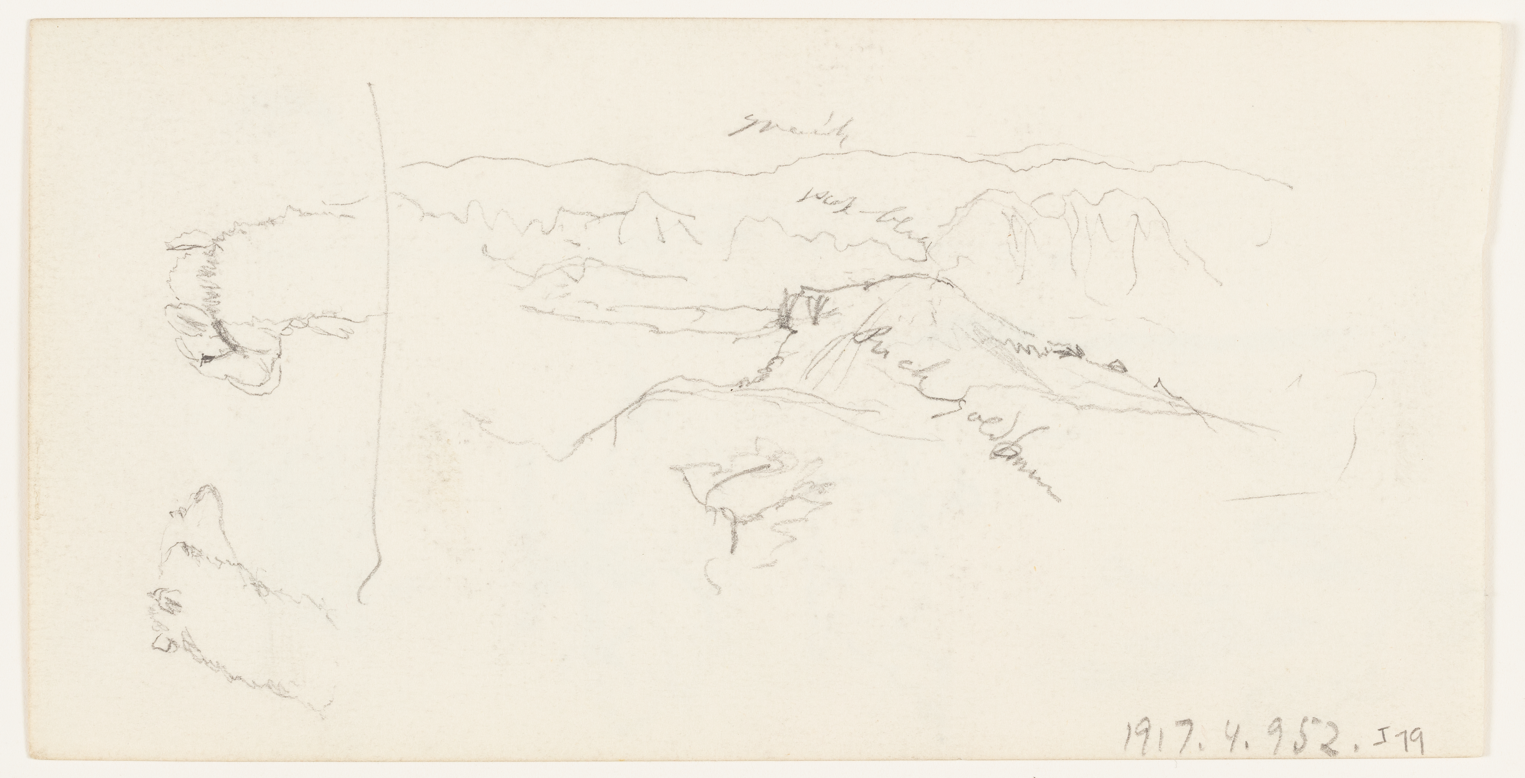 Drawing, Mixed Studies, Palestine or Syria; Frederic Edwin Church (American, 1826–1900); USA; graphite on white wove paper; verso: graphite; 8.6 × 17 cm (3 3/8 × 6 11/16 in.); Gift of Louis P. Church; 1917-4-952