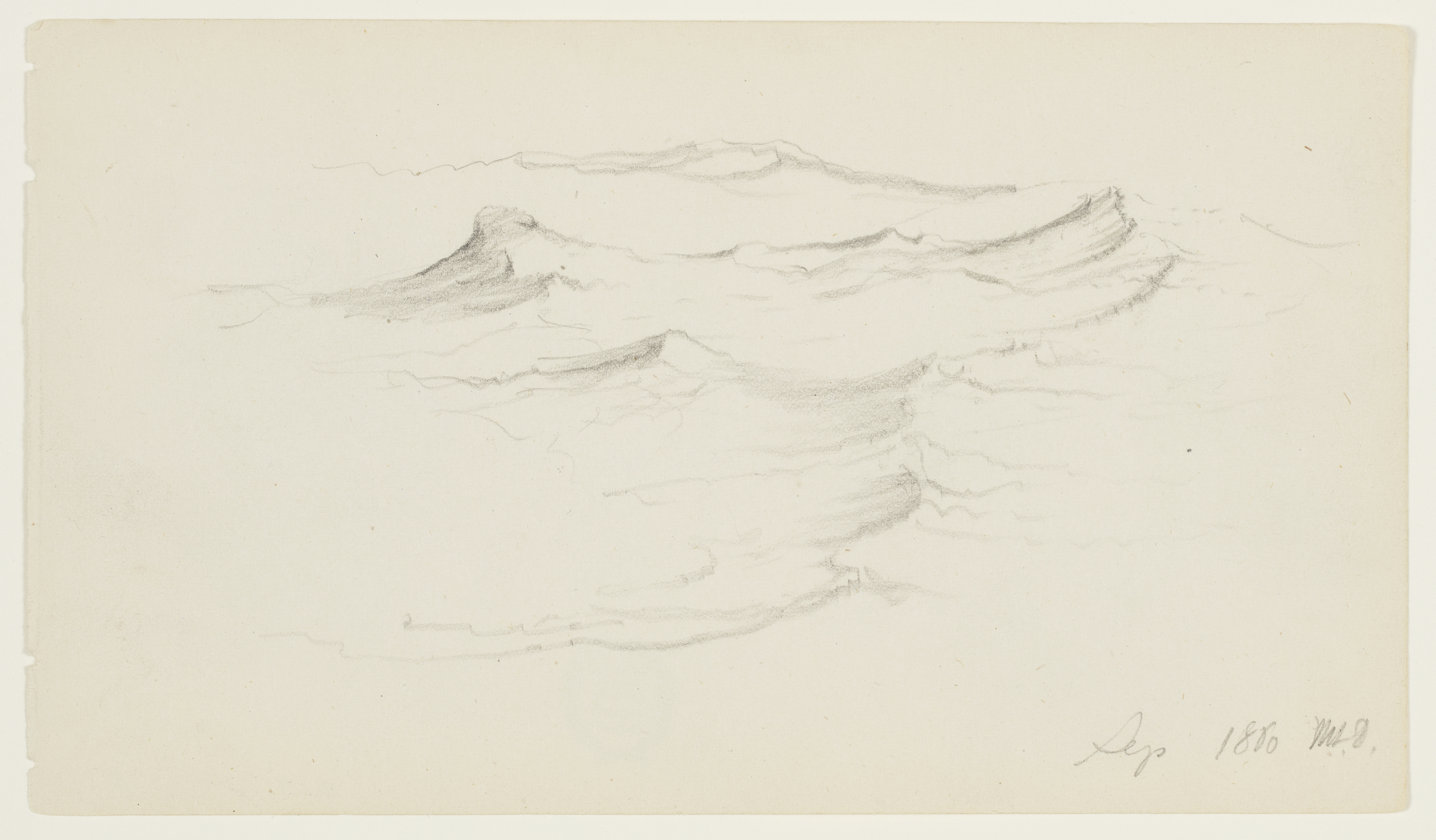 Drawing, Ocean Waves, Mt. Desert Island, Maine; Frederic Edwin Church (American, 1826–1900); USA; graphite on white wove paper; 10.8 × 18.9 cm (4 1/4 × 7 7/16 in.); Gift of Louis P. Church; 1917-4-966-a