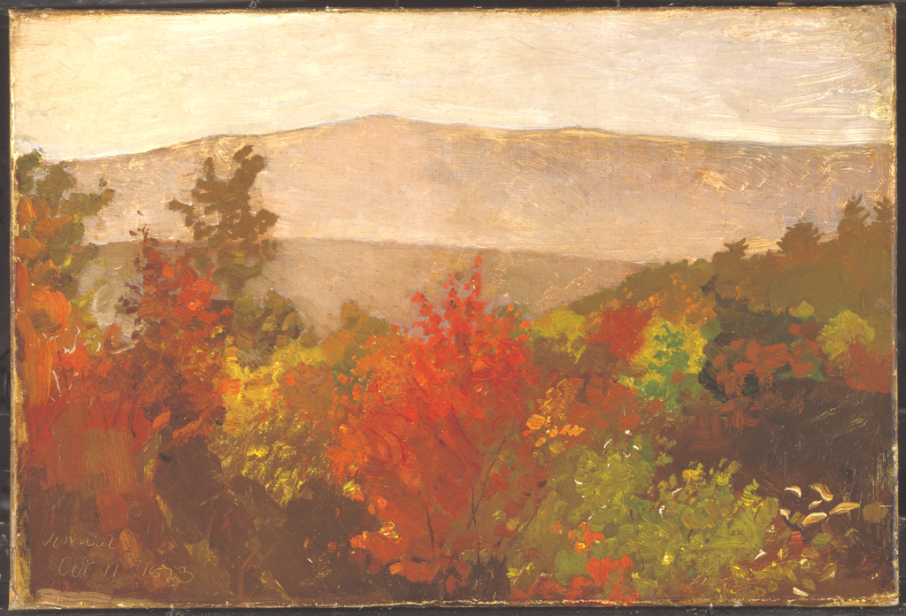 Painting, Autumn Treetops; Winslow Homer (American, 1836–1910); possibly USA; brush and oil paint on canvas; 34.4 × 50.8 cm (13 9/16 × 20 in.); Gift of Mrs. Charles Savage Homer, Jr.; 1918-20-2