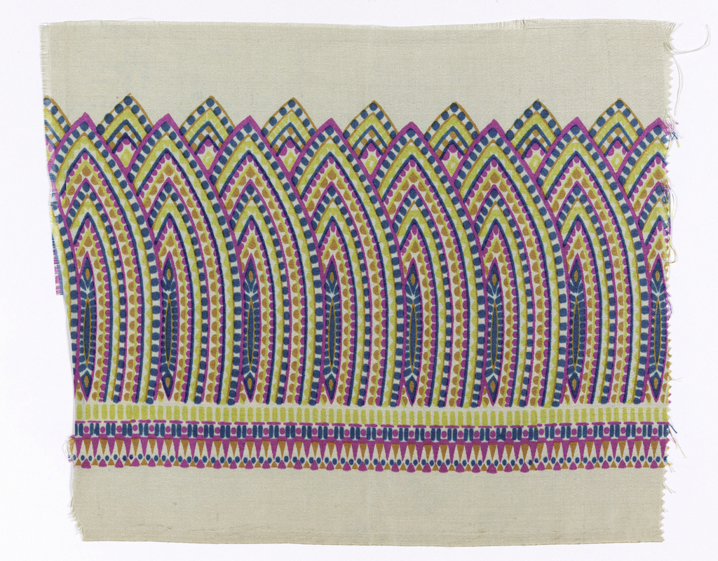 This is a Sample. It was manufactured by Duplan Silk Corporation. It is dated ca. 1918 and we acquired it in 1918. Its medium is silk and its technique is printed on plain weave. It is a part of the Textiles department.