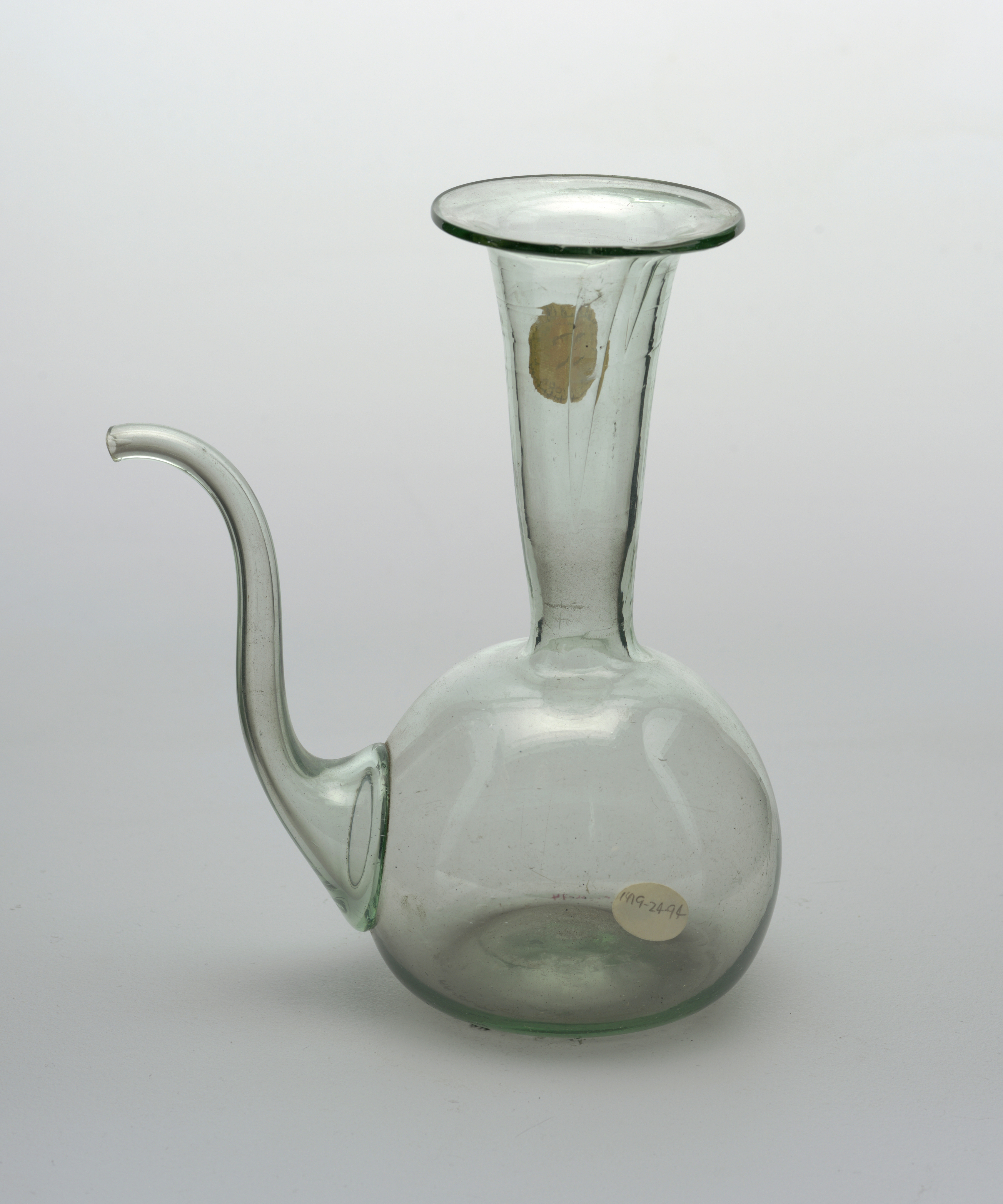 Pitcher (Iran); clear and greensih glass; H x W x D: 18.5 x 16 x 9 cm (7 5/16 x 6 5/16 x 3 9/16 in.); Gift of Rodman Wanamaker; 1919-24-94