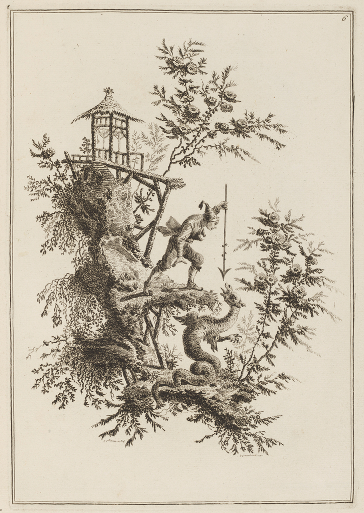 This is a Print. It was designed by Jean-Baptiste Pillement and print maker: Jean-Jacques Avril the Elder. It is dated 1771 and we acquired it in 1920. Its medium is ethching on paper. It is a part of the Drawings, Prints, and Graphic Design department.