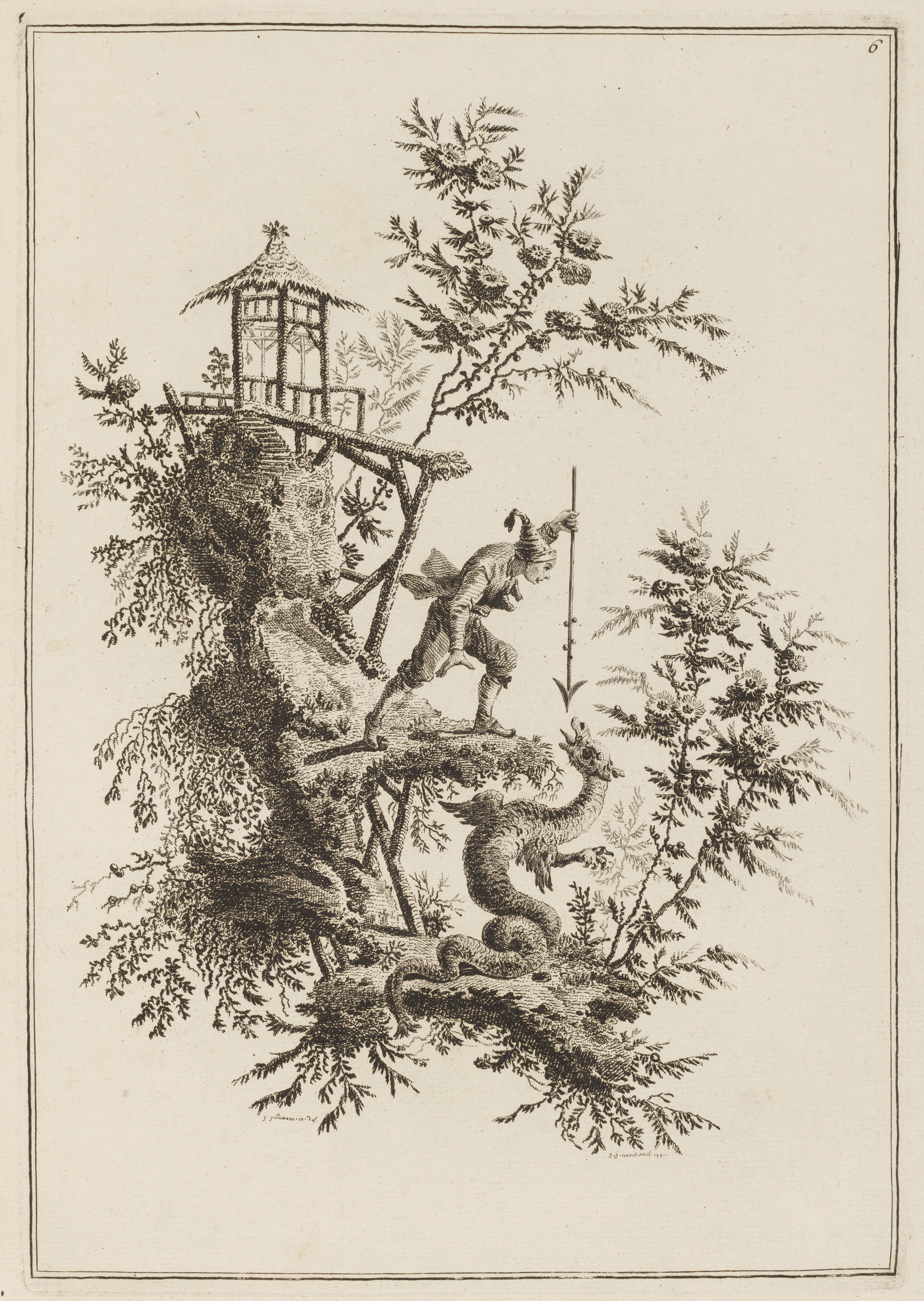 Right top corner: "6."; bottom of the design: "j. pillement.in.del."; "j.j.avril.sculp.1771."