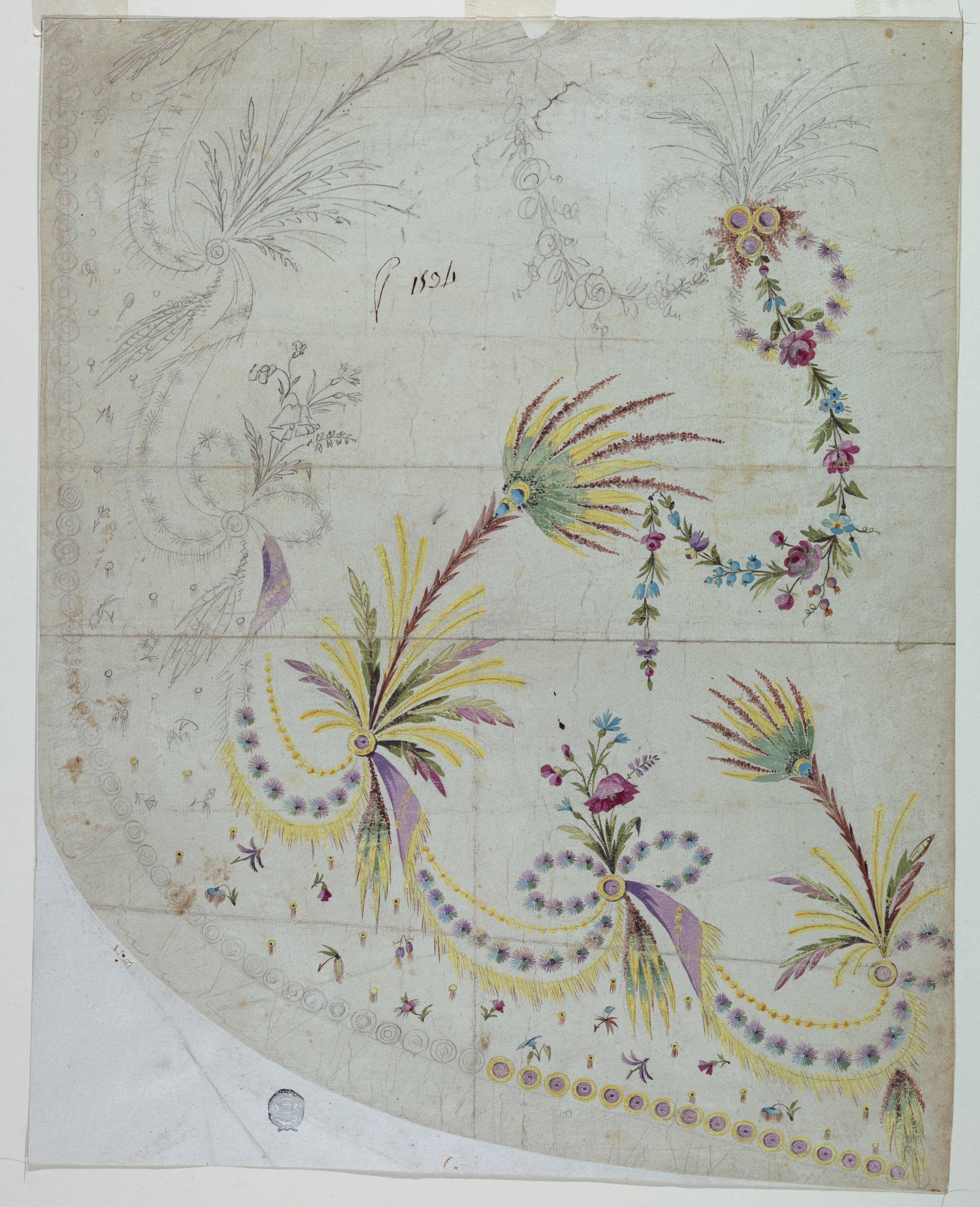 This is a Drawing. It was designed by Fabrique de Saint Ruf. It is dated ca. 1785 and we acquired it in 1920. Its medium is graphite, brush and gouache on paper. It is a part of the Drawings, Prints, and Graphic Design department.