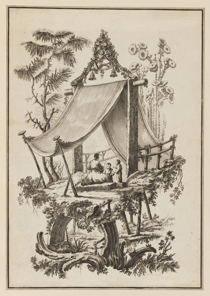 Print, Three Figures Underneath Tent; Designed by Jean-Baptiste Pillement (French, 1728–1808); Print Maker: Jean-Jacques Avril the Elder (French, 1744 - 1831); France; etching on paper; Gift of Eleanor and Sarah Hewitt; 1920-36-230