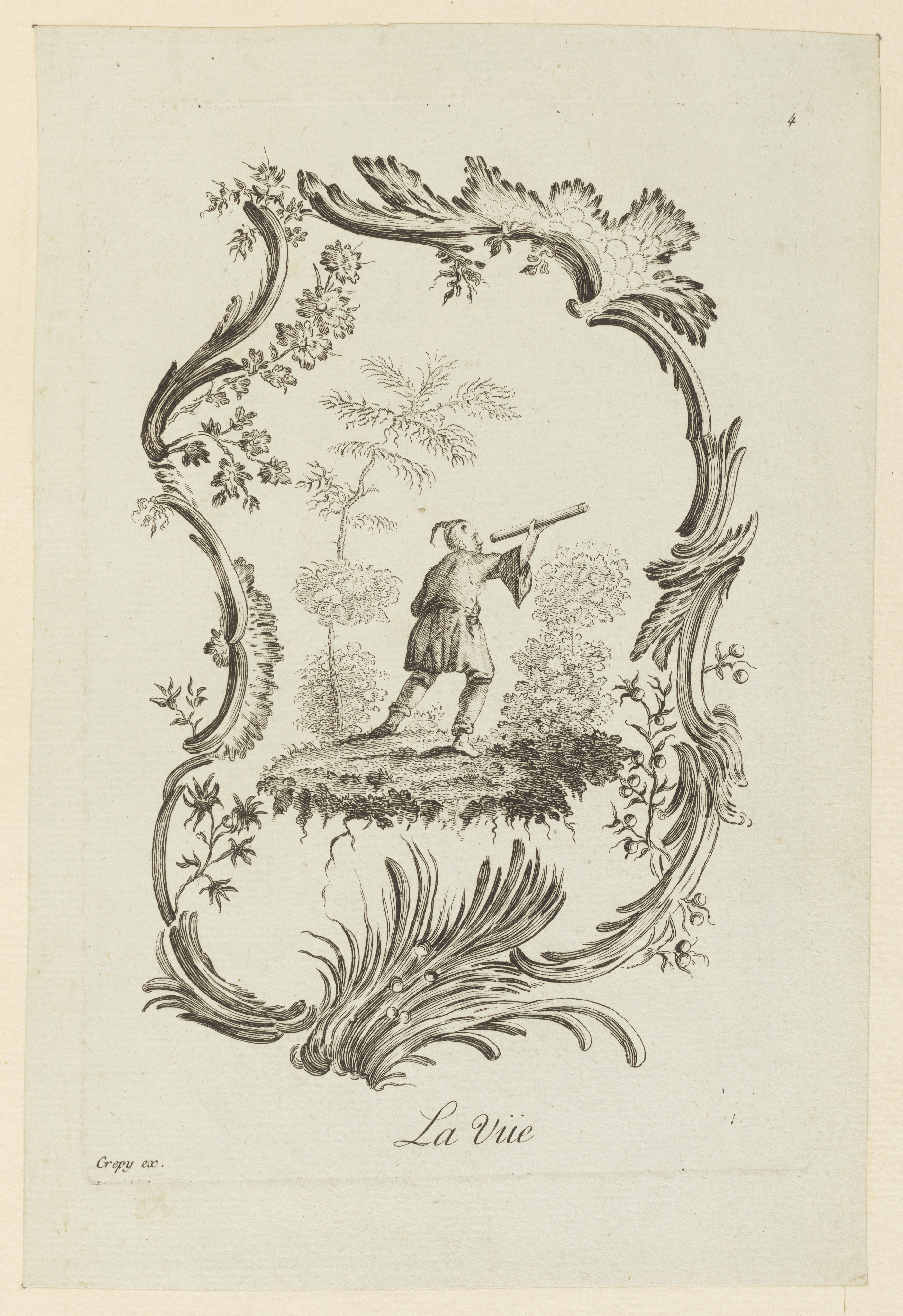 Print, La Vüe, from "Le Cinq Sens"; Designed by Jean-Baptiste Pillement (French, 1728–1808); France; etching on paper; Gift of Eleanor and Sarah Hewitt; 1920-36-274