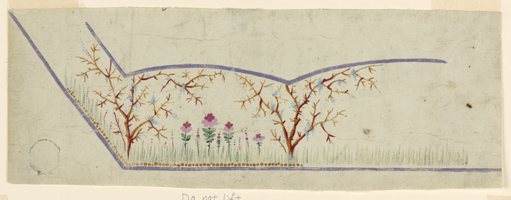 Drawing, Design for Embroidered Waistcoat; Designed by Mademoiselle Favel; France; brush and gouache on laid paper; 10.3 x 28.1 cm (4 1/16 x 11 1/16 in.); Gift of Eleanor and Sarah Hewitt; 1920-36-36