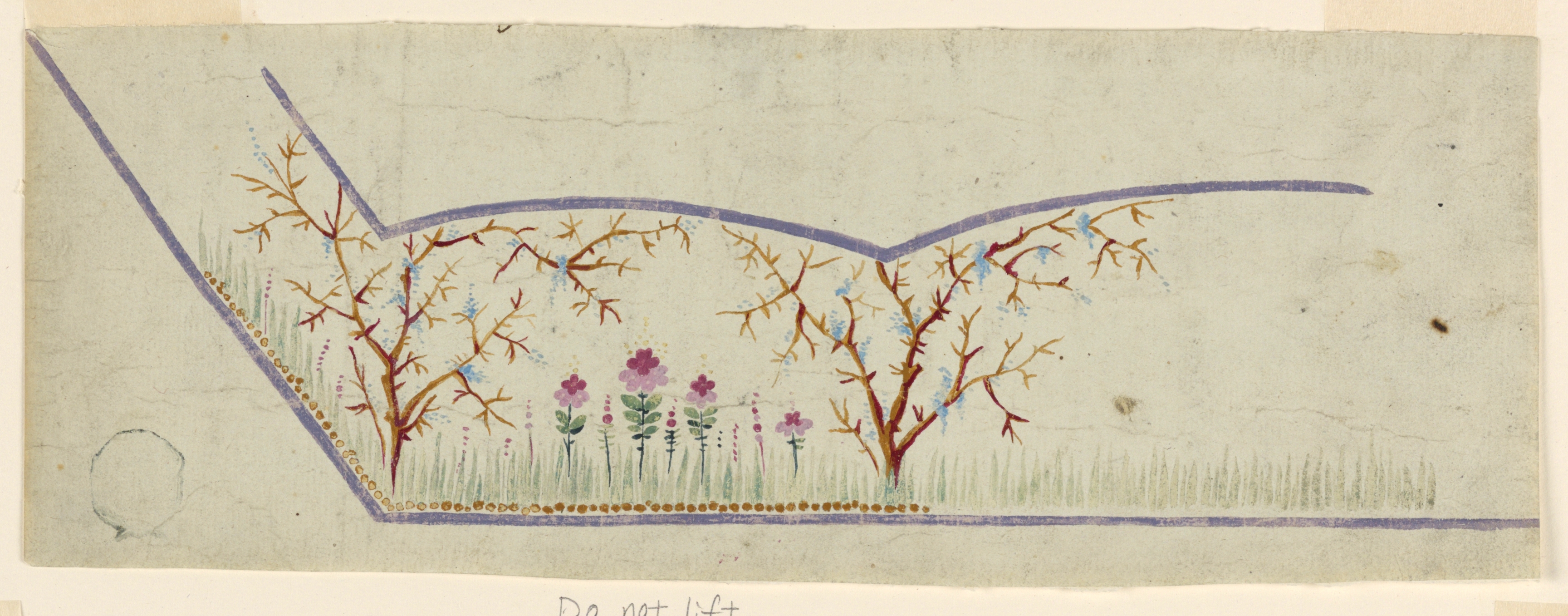 This is a Drawing. It was designed by Mademoiselle Favel. It is dated ca. 1785 and we acquired it in 1920. Its medium is brush and gouache on laid paper. It is a part of the Drawings, Prints, and Graphic Design department.