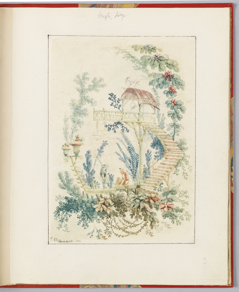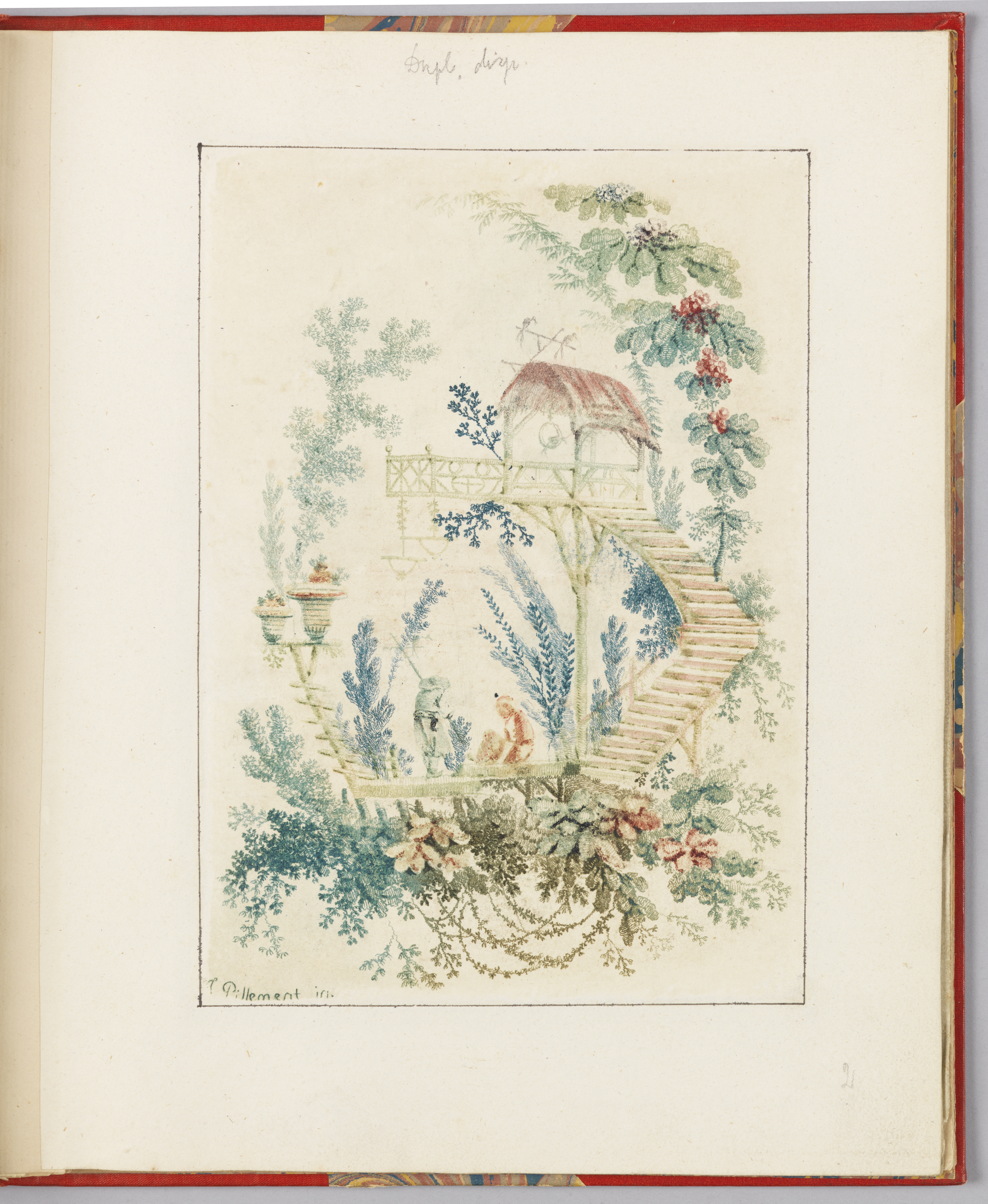This is a Print. It was designed by Jean-Baptiste Pillement and print maker: Anne Allen. It is dated 1790–1799 and we acquired it in 1921. Its medium is etching with colored inks à la poupée on off-white laid paper. It is a part of the Drawings, Prints, and Graphic Design department.