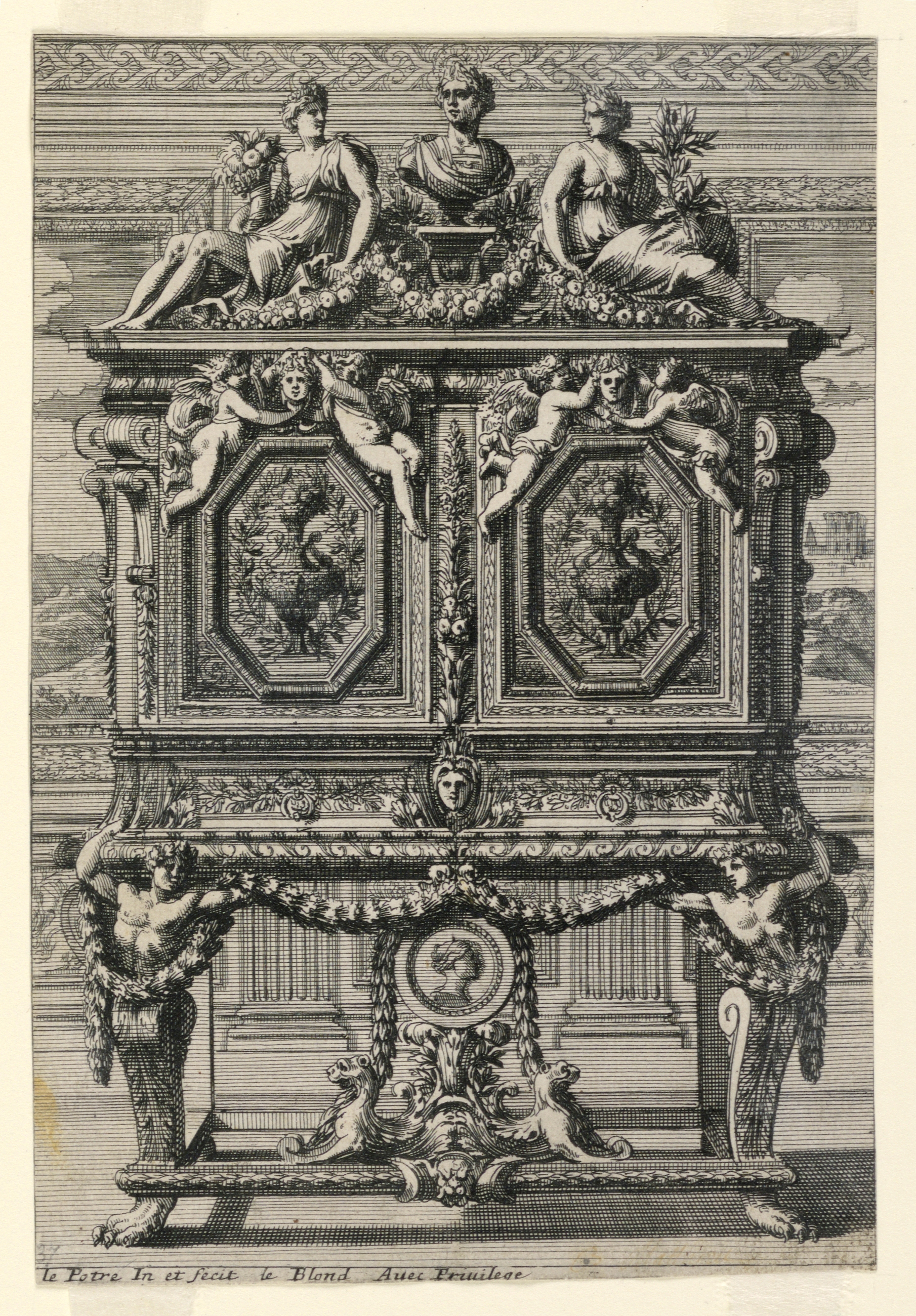 This is a Print. It was created by Jean Le Pautre. It is dated ca. 1675 and we acquired it in 1920. Its medium is etching on white laid paper. It is a part of the Drawings, Prints, and Graphic Design department.
