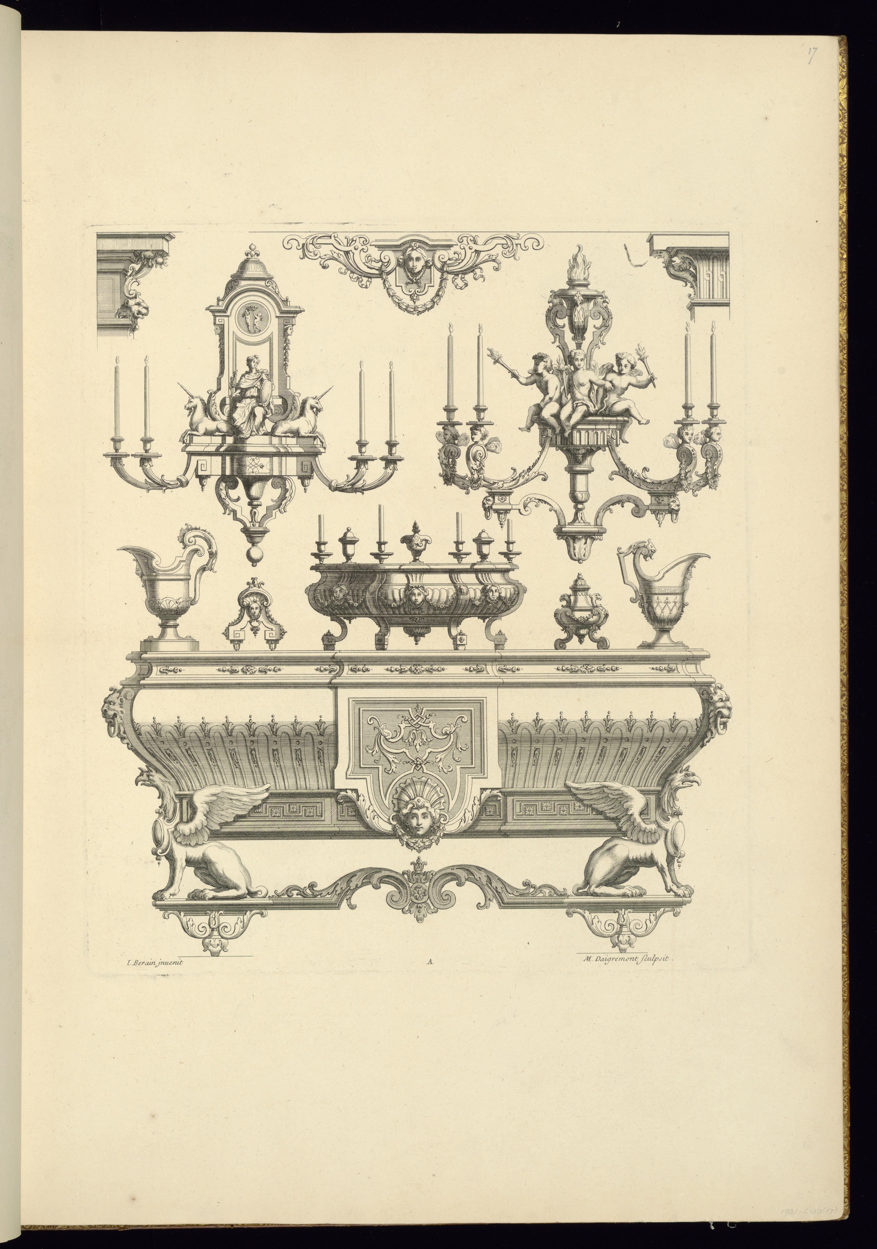 Lettered lower left, in plate: I.Berain invenit; Lettered lower right, in plate: M. Daigremont Sculpsit.