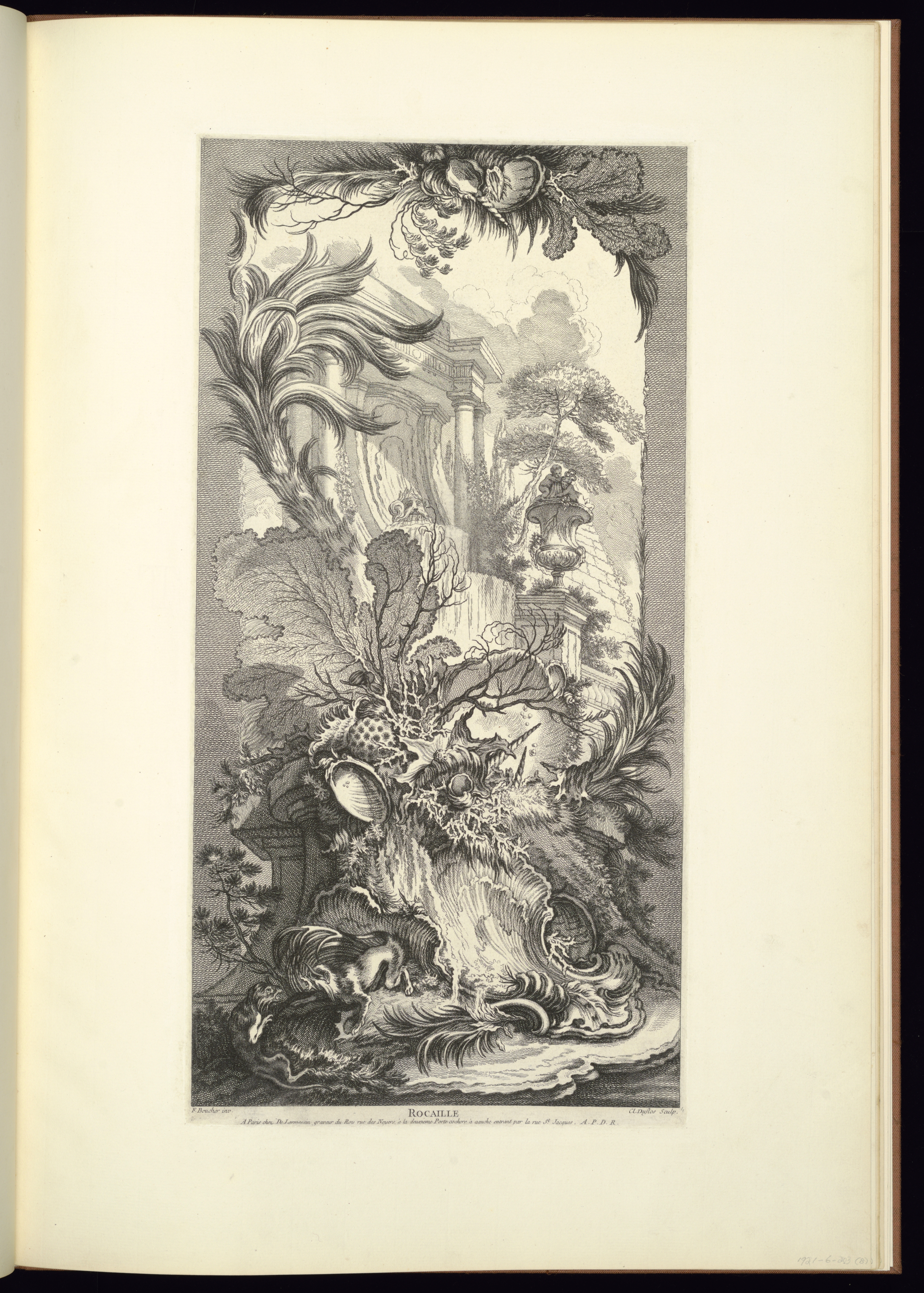 Printed lower center, in plate: ROCAILLE / A Paris chez De Larmessin, graveur du Roy rue des Noyers à la deuxieme Porte cochere à gauche entrant par la rue St. Jacques. A.P.D.R.; Inscribed in graphite, lower right, in margin: 1921-6-203 (8)