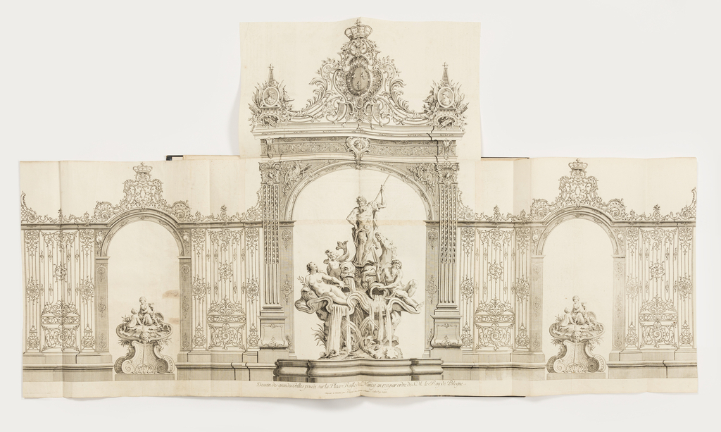 Lettered lower center, in plate : Dessein des grandes Grilles posées sur la Place Royale de Nancy en 1755 par ordre de S.M. le Roy de Pologne