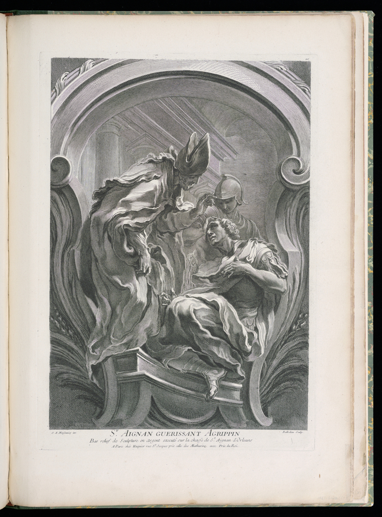 Print, St. Aignan Guerissant Agrippin (St. Aignan Healing Agrippa), plate 110, in Oeuvres de Juste-Aurèle Meissonnier (Works by Juste-Aurèle Meissonnier)