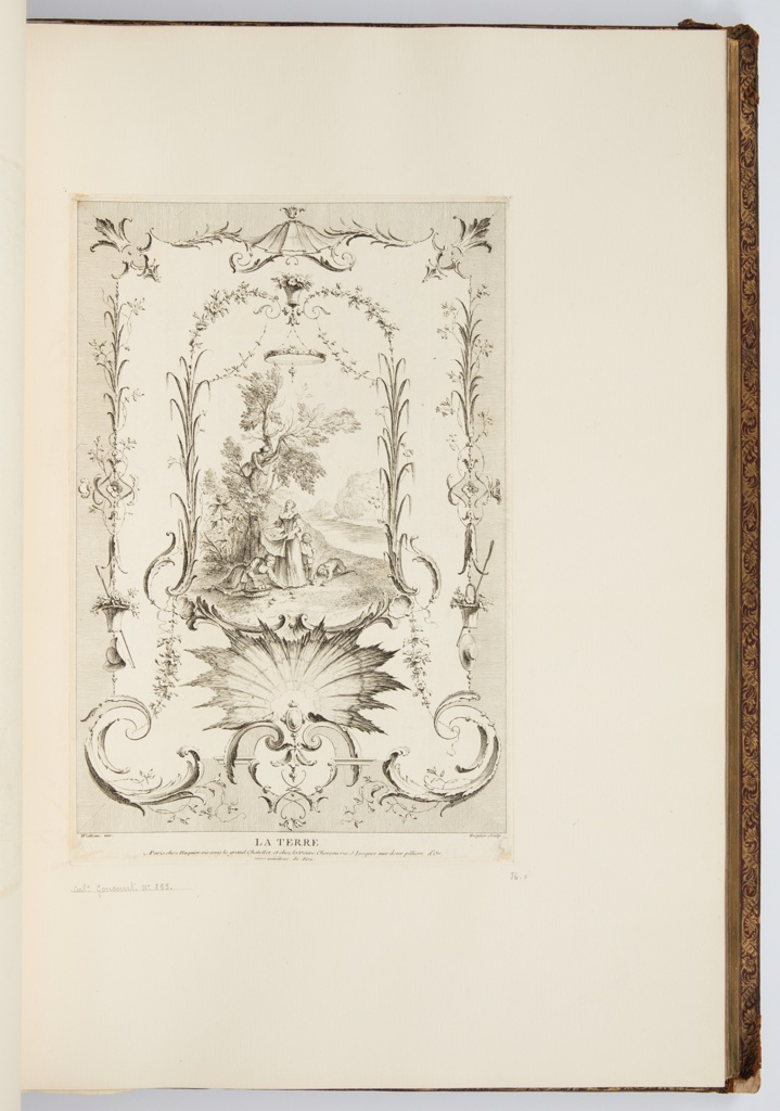 Printed lower center, in plate: LA TERRE / AParis chez Huquier vis a vis le grand Chatellet et chez la Veuve Chereau rue S.Jacques aux deux pilliers d'Or / avec privilege du Roy.; Inscribed in graphite, lower left, in margin: Cat: Goncourt: No. 255.; Inscribed in graphite, lower right, in margin: 36.x