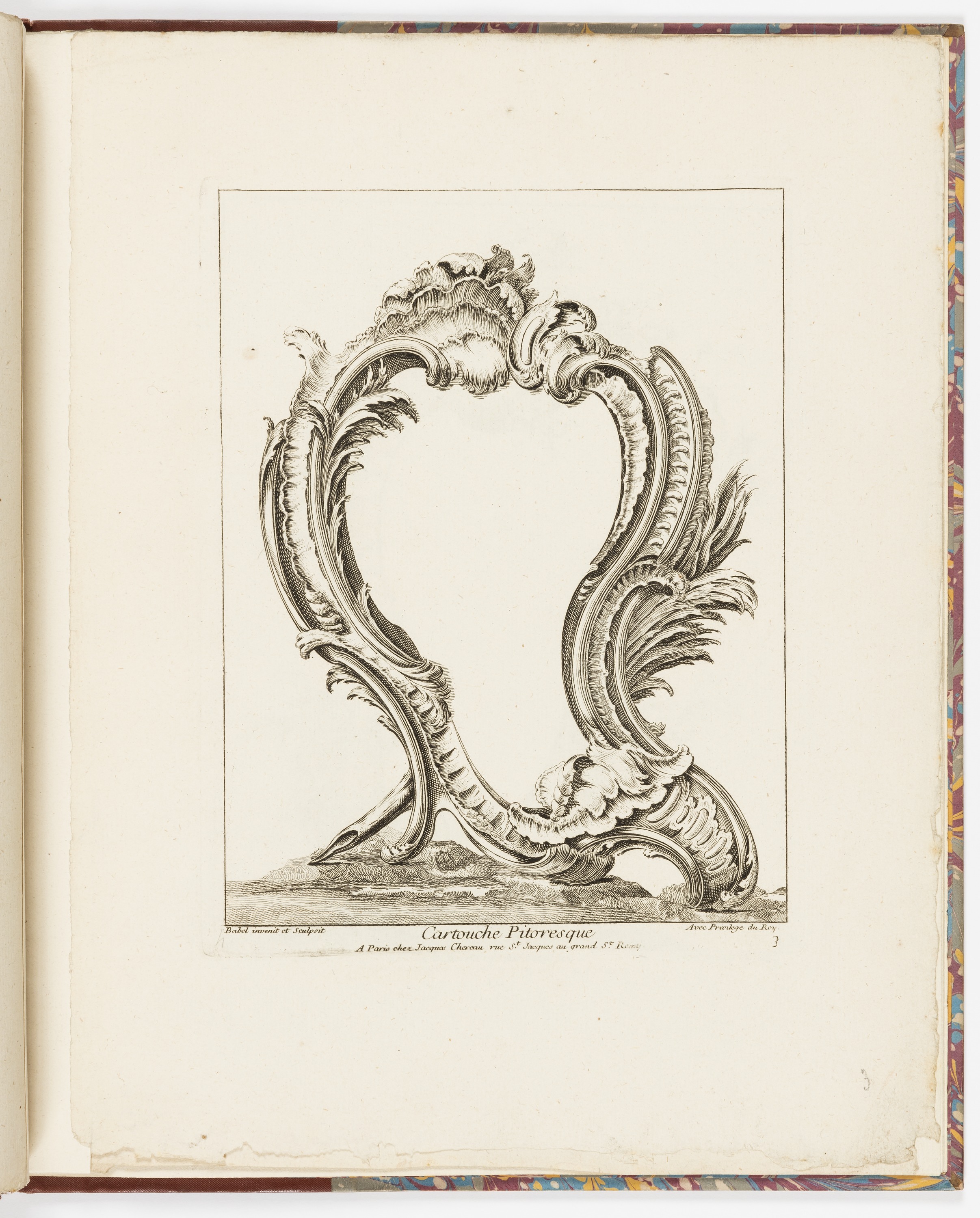 Printed in plate, lower center: Cartouche Pitoresque / A Paris chez Jacques Chereau rue St. Jacques au grand St. Remy, lower right: Avec Privilege du Roy. / 3; Inscribed in graphite, lower right, in margin: 3