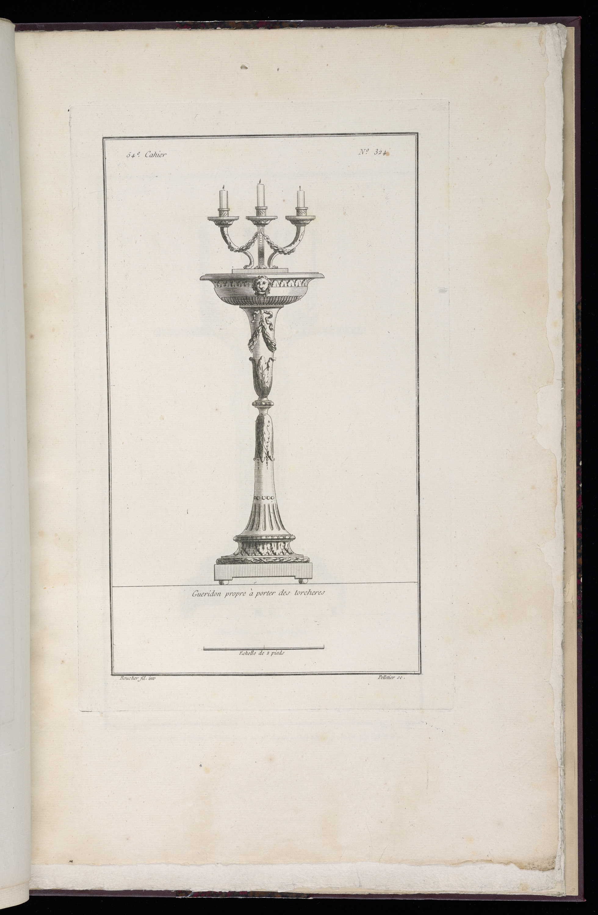 Printed upper left, in plate: 54e. Cahier; Printed upper right, in plate: No. 324; Printed lower center, in plate: Gueridon propre à porter des torcheres.