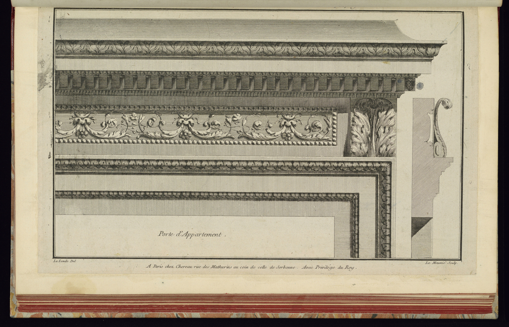 Print, Porte d'Appartement; Designed by Richard de Lalonde (French, active 1780–96); Print Maker: C. Le Meunié (French, active 1770–1786); Published by Jacques-François Chéreau (French, 1742 - 1794); France; etching on off-white laid paper; Purchased for the Museum by the Advisory Council; 1921-6-278-37