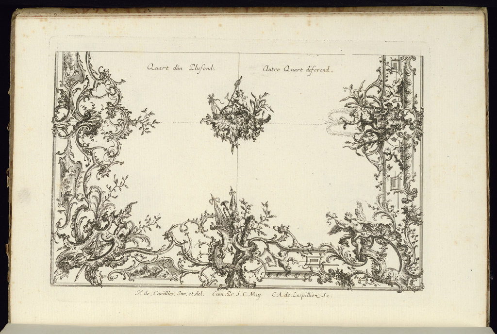 This is a Bound print. It was designed by François de Cuvilliés the Elder and published by François de Cuvilliés the Elder and print maker: Carl Albert von Lespilliez. It is dated 1740–68 and we acquired it in 1920. Its medium is etching and engraving on paper. It is a part of the Drawings, Prints, and Graphic Design department.