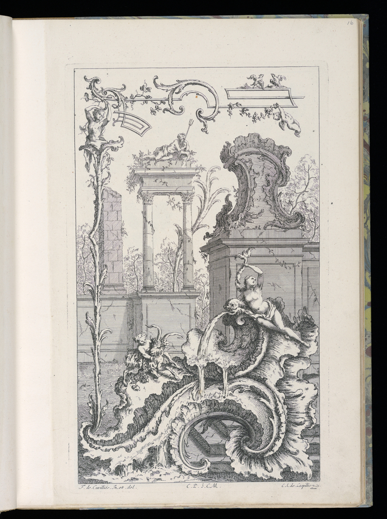 This is a Bound print. It was designed by François de Cuvilliés the Elder and published by François de Cuvilliés the Elder and print maker: Charles-Albert Lespilliez. It is dated 1738–45 and we acquired it in 1920. Its medium is engraving and etching on laid paper. It is a part of the Drawings, Prints, and Graphic Design department.
