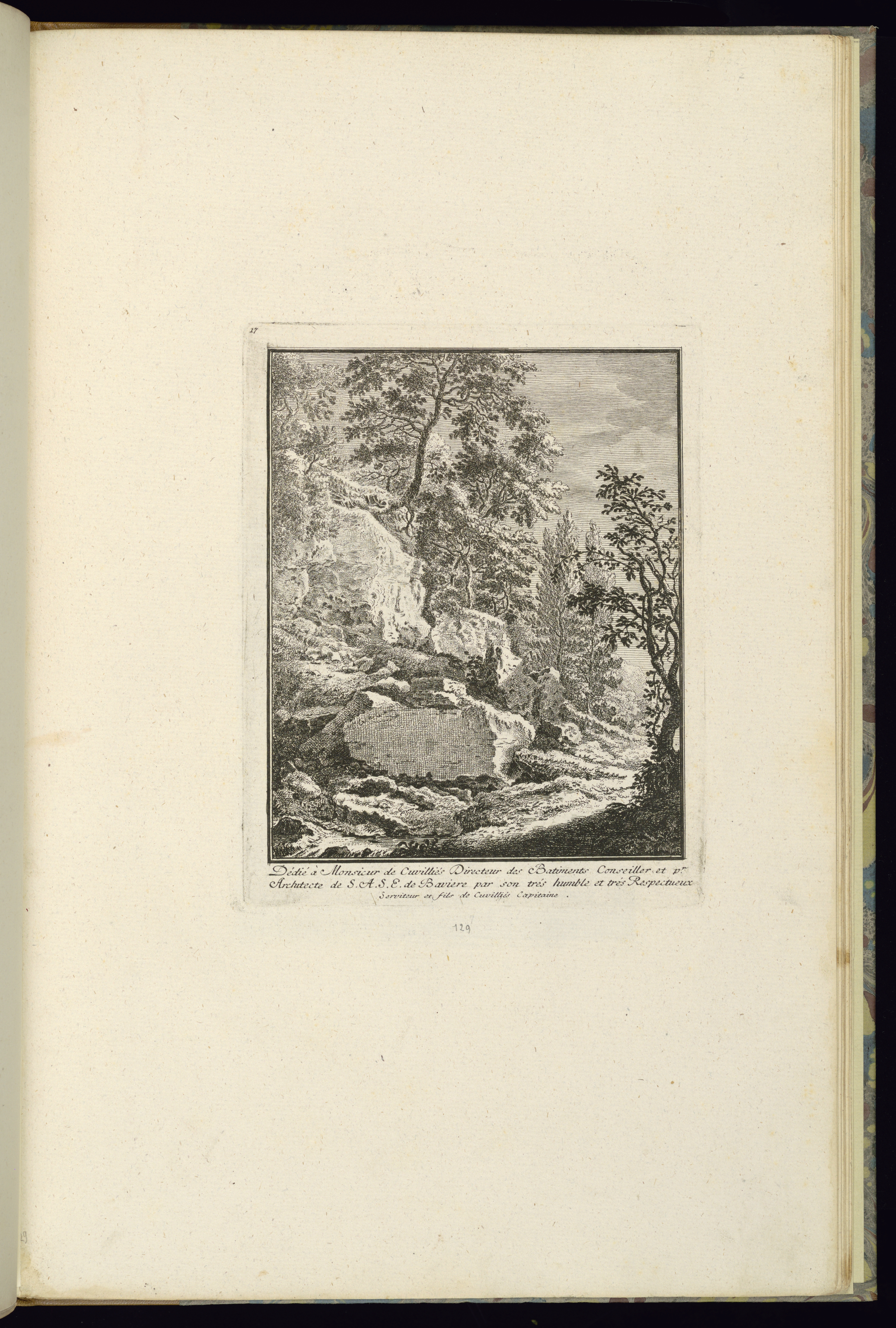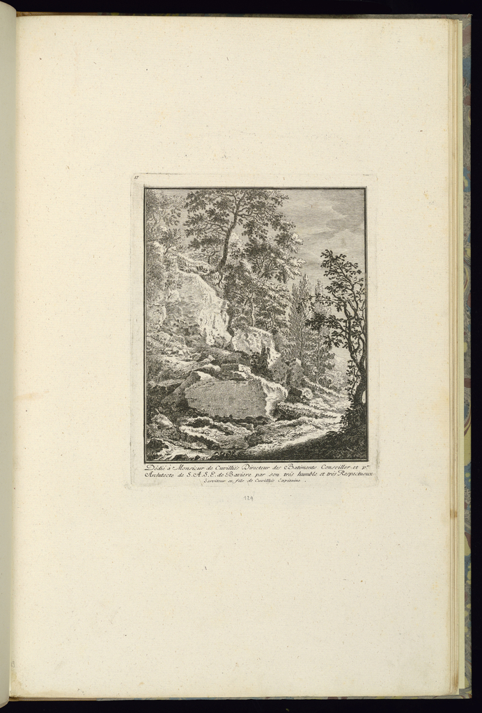 Printed upper left, in plate: 17; Printed lower center, in plate: Dédié à Monsieur de Cuvilliés Directeur des Batiments Conseiller et pr. / Architecte de S.A.S.E. de Baviere par son trés humble et trés Respectueux / Serviteur et fils de Cuvilliés Capitaine.; Inscribed in graphite, lower center, in margin: 129