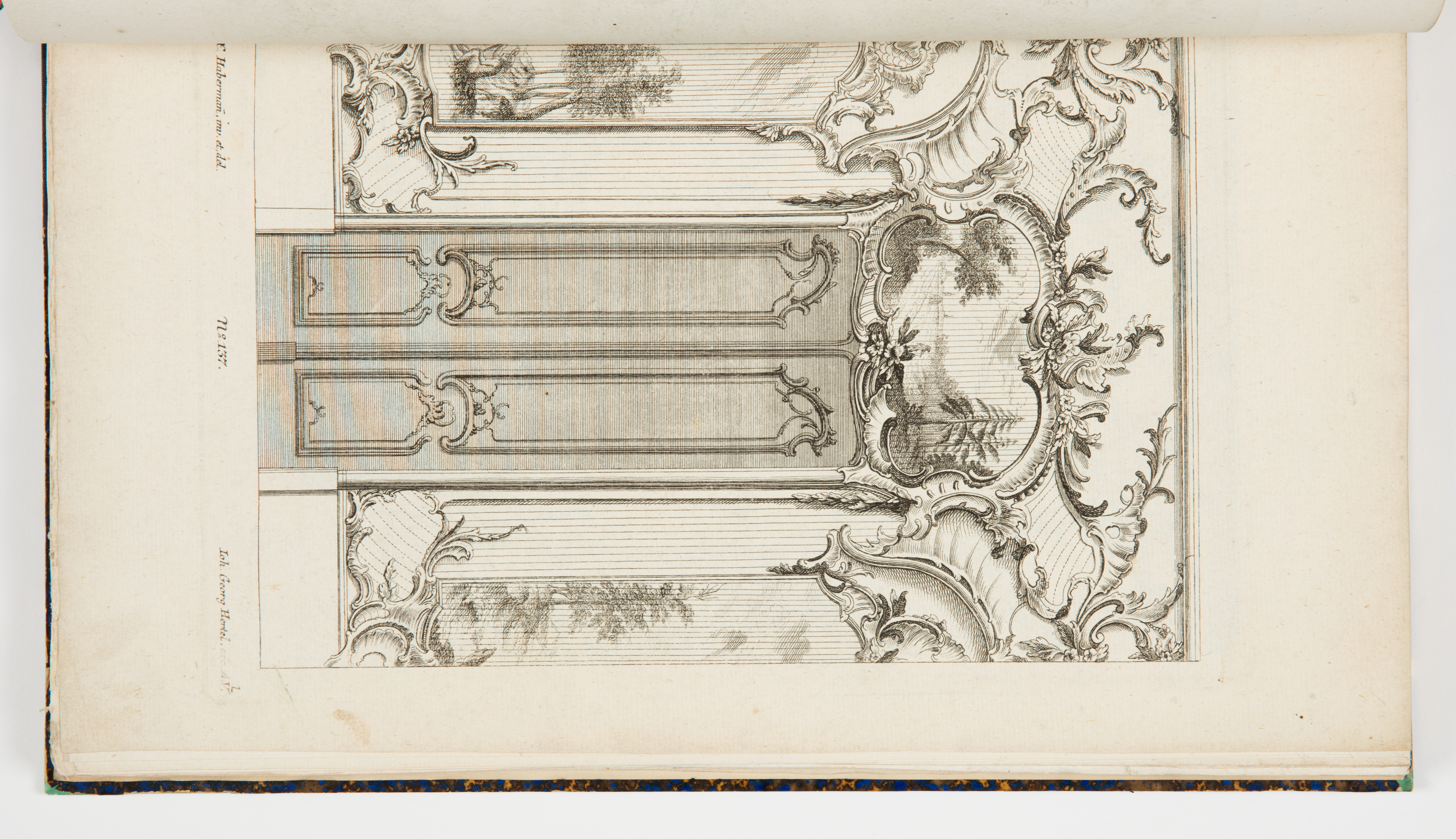 Print, Design for Doors with Surrounding Ornament; Designed by Franz Xaver Habermann (German, 1721 – 1796); Published by Johann Georg Hertel (German, ca. 1700–1776); Germany; etching and engraving on off white laid paper; Purchased for the Museum by the Advisory Council; 1921-6-317-23
