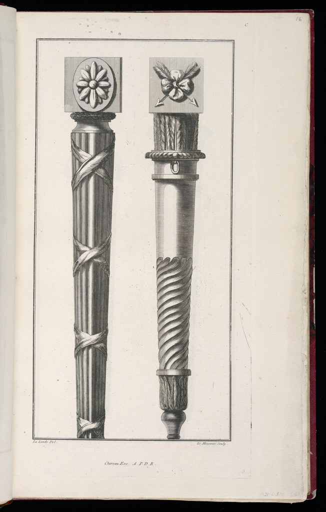 Print, Two Furniture Leg Designs; Designed by Richard de Lalonde (French, active 1780–96); Print Maker: C. Le Meunié (French, active 1770–1786); Published by Jacques-François Chéreau (French, 1742 - 1794); France; etching on off-white laid paper; Purchased for the Museum by the Advisory Council; 1921-6-330-16
