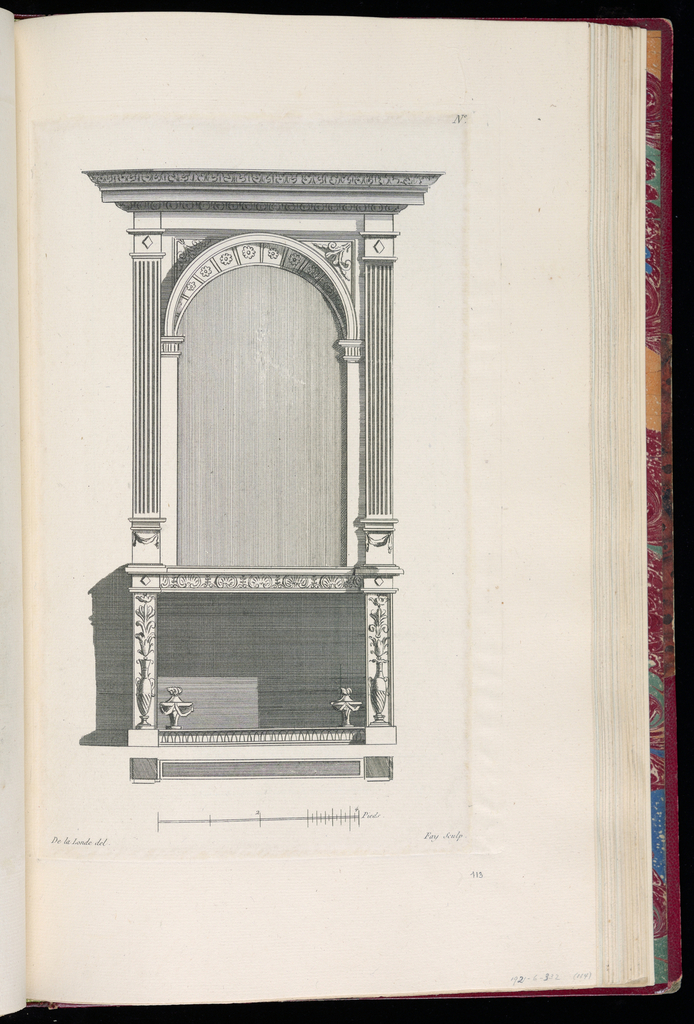 Print, Design of a Chimneypiece; Designed by Richard de Lalonde (French, active 1780–96); Print Maker: Jean-Baptiste Fay (active 1780 – 1790); Published by Pierre Jean (French, 1754–1829); France; etching on off-white laid paper; Purchased for the Museum by the Advisory Council; 1921-6-332-114