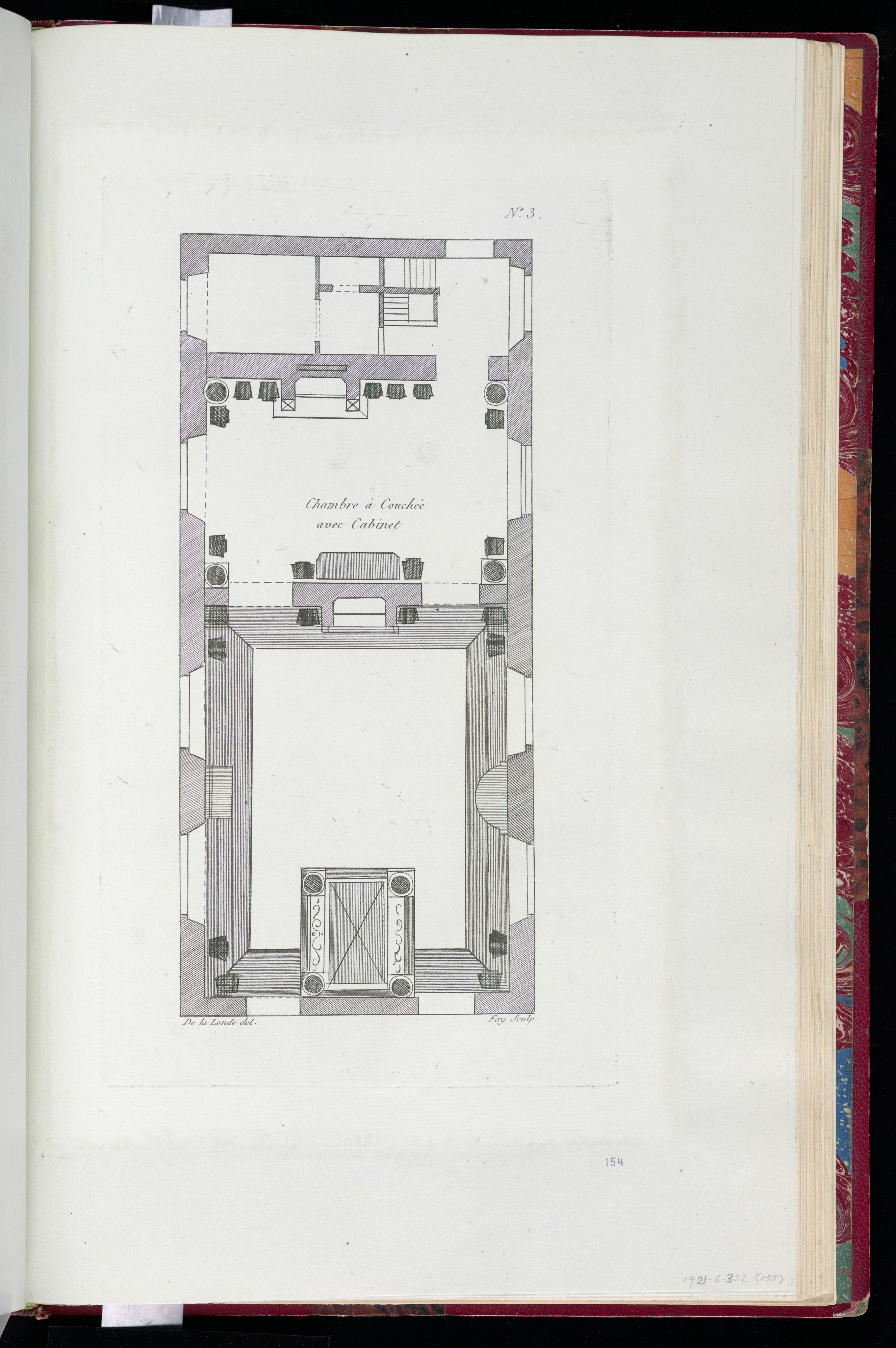 Printed center, in plate: Chambre à Couchée / avec Cabinet; Printed upper right, in plate: No.3; Inscribed in graphite, lower right, in margin: 154 / 1921-6-332 (155)