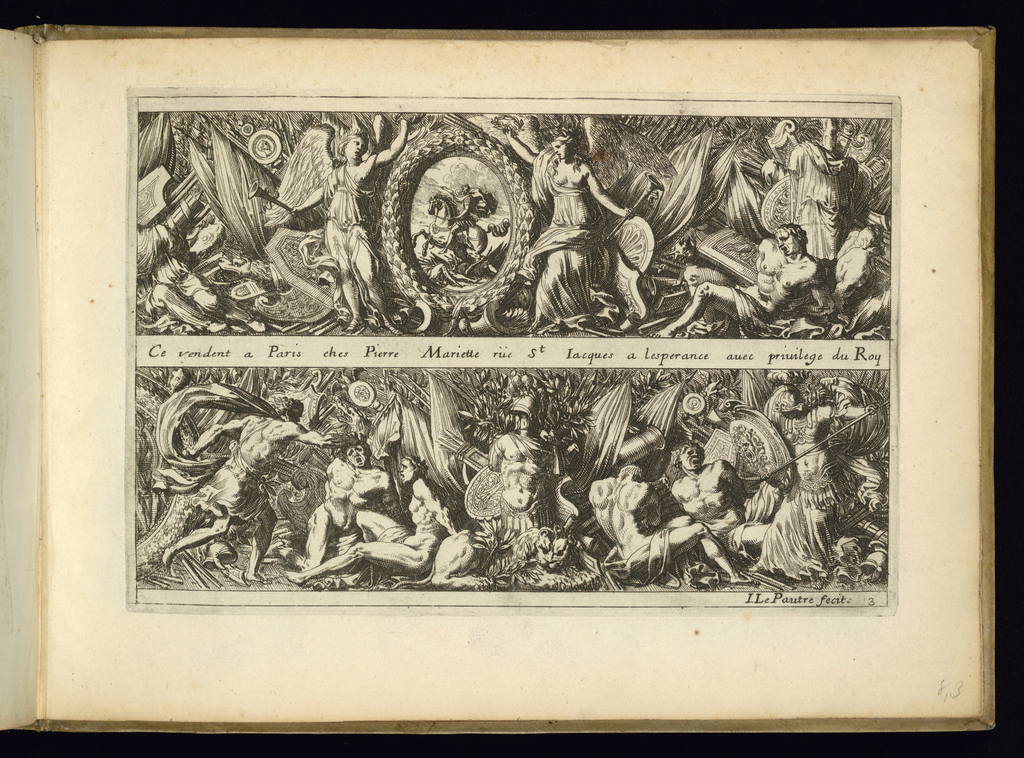 Lettered in plate, center : Ce vendent a Paris ches Pierre Mariette rüe St. Jacques a lesperance avec privilege du Roy; lettered lower right : I Le Pautre fecit