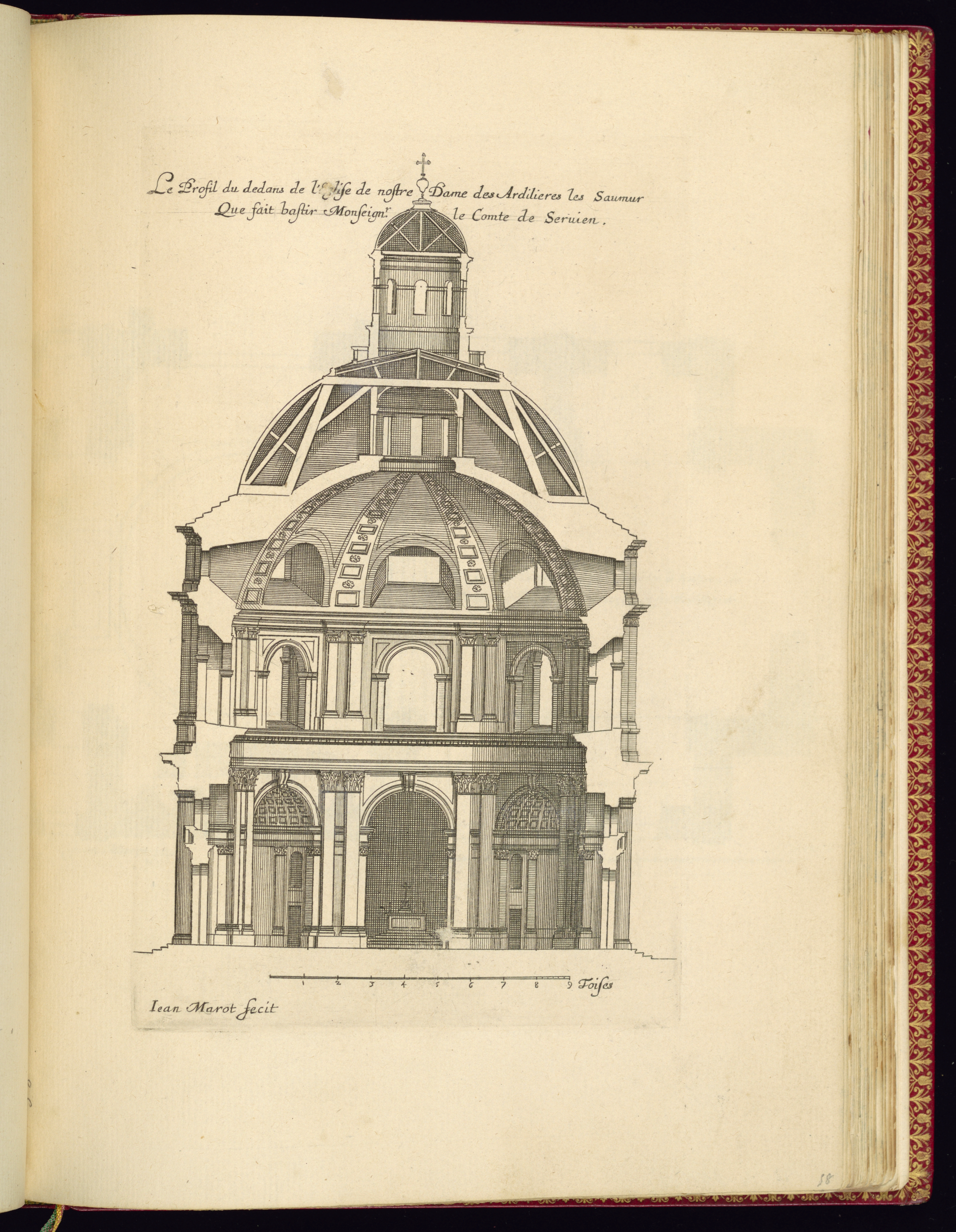 Lettered in plate, upper center: Le Profil du dedans de l’Eglise de nostre Dame des Ardilieres les Saumur/ Que fait bastir Monseignr. Le Comte de Servien; lettered lower right: Toises