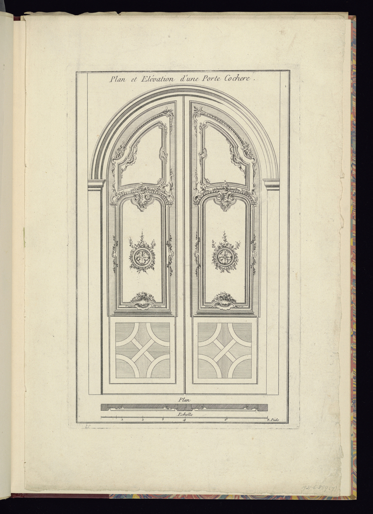 Print, Plan et Elévation d’une Porte Cochere; Designed by A. Le Canu (French, active 1746 – 1768), Jean Mansart de Jouy (French, 1705 - 1783); Published by Jacques-François Chéreau (French, 1742 - 1794); France; etching and engraving on laid paper; Purchased for the Museum by the Advisory Council; 1921-6-359-7