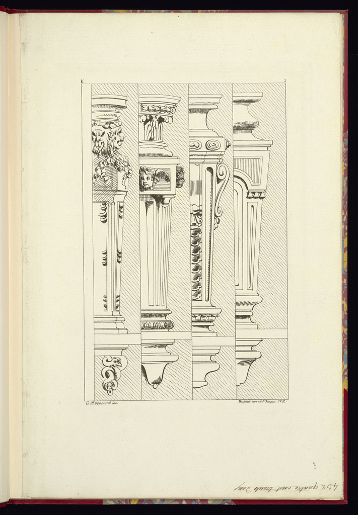 Lettered in plate, upper left: K; numbered upper right: 3; inscribed in graphite lower right margin: 3; inscribed in ink, upside down, lower right margin: 432 quatre cent trente deux