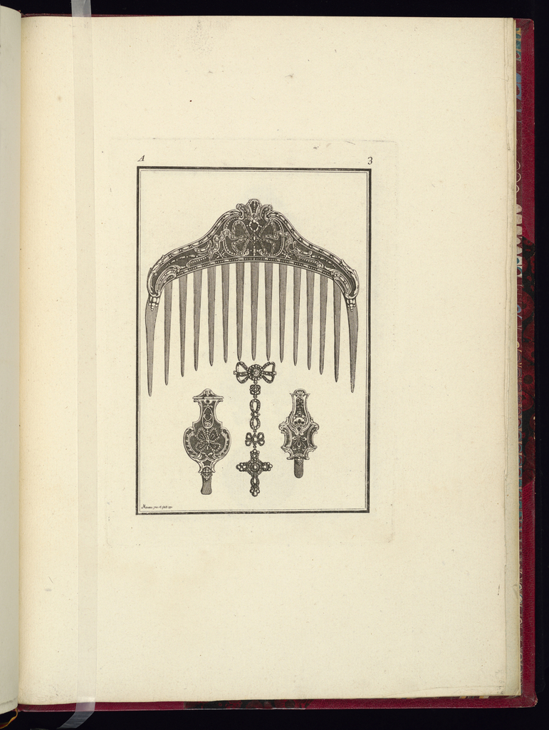 Print, Hair Ornament and Jewelry Designs; Designed by Pierre Moreau (French, 1722 – 1798); Published by Jean-Baptiste Crépy (French, active 1753 – d. 1796); France; etching and engraving on laid paper; Purchased for the Museum by the Advisory Council; 1921-6-369-9