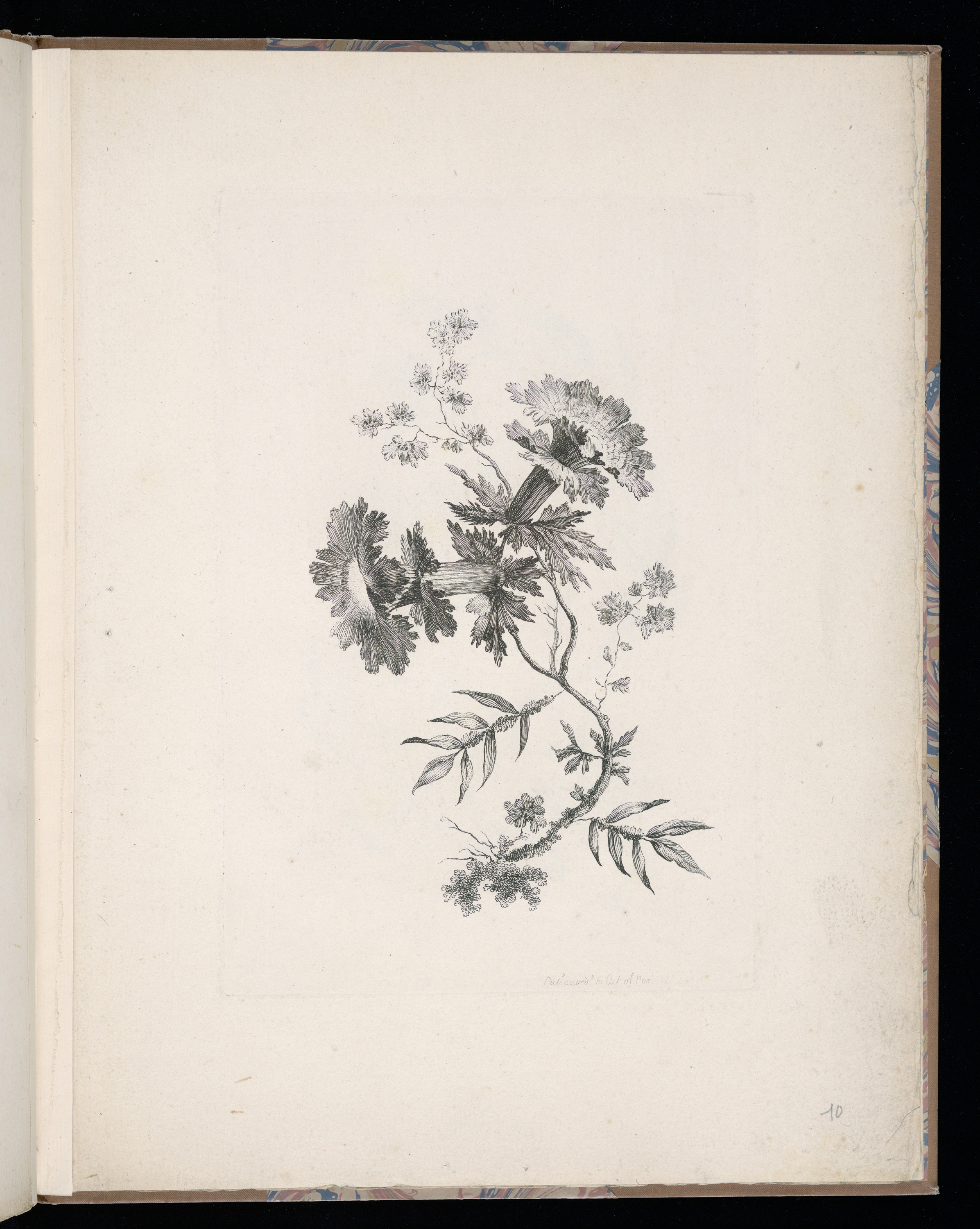Print, Spray of Flowers; Designed by Jean-Baptiste Pillement (French, 1728–1808); Print Maker: Pierre-Charles Canot (French, 1710 - 1777); Published by Charles Leviez (French, 1708–1778); France; etching on laid paper; Purchased for the Museum by the Advisory Council; 1921-6-380-10