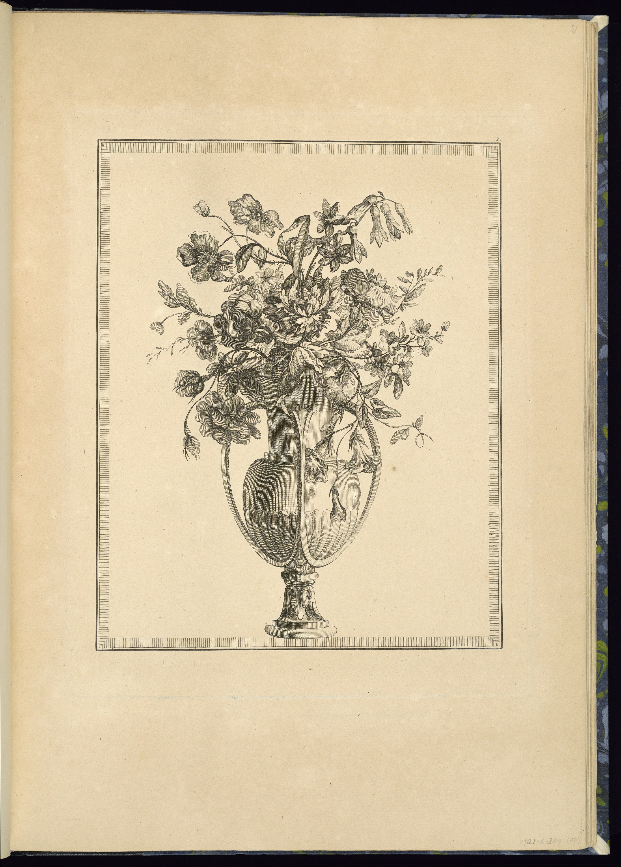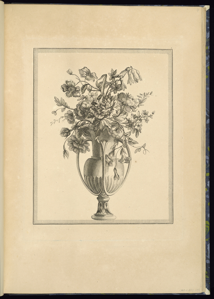Print, Vase Design with Flowers; Designed by Pierre Ranson (French, 1736–1786); Print Maker: Etienne Claude Voysard (French, 1746 - 1812); Published by Esnauts et Rapilly (French, 1770 - 1820); etching on laid paper; Purchased for the Museum by the Advisory Council; 1921-6-389-59