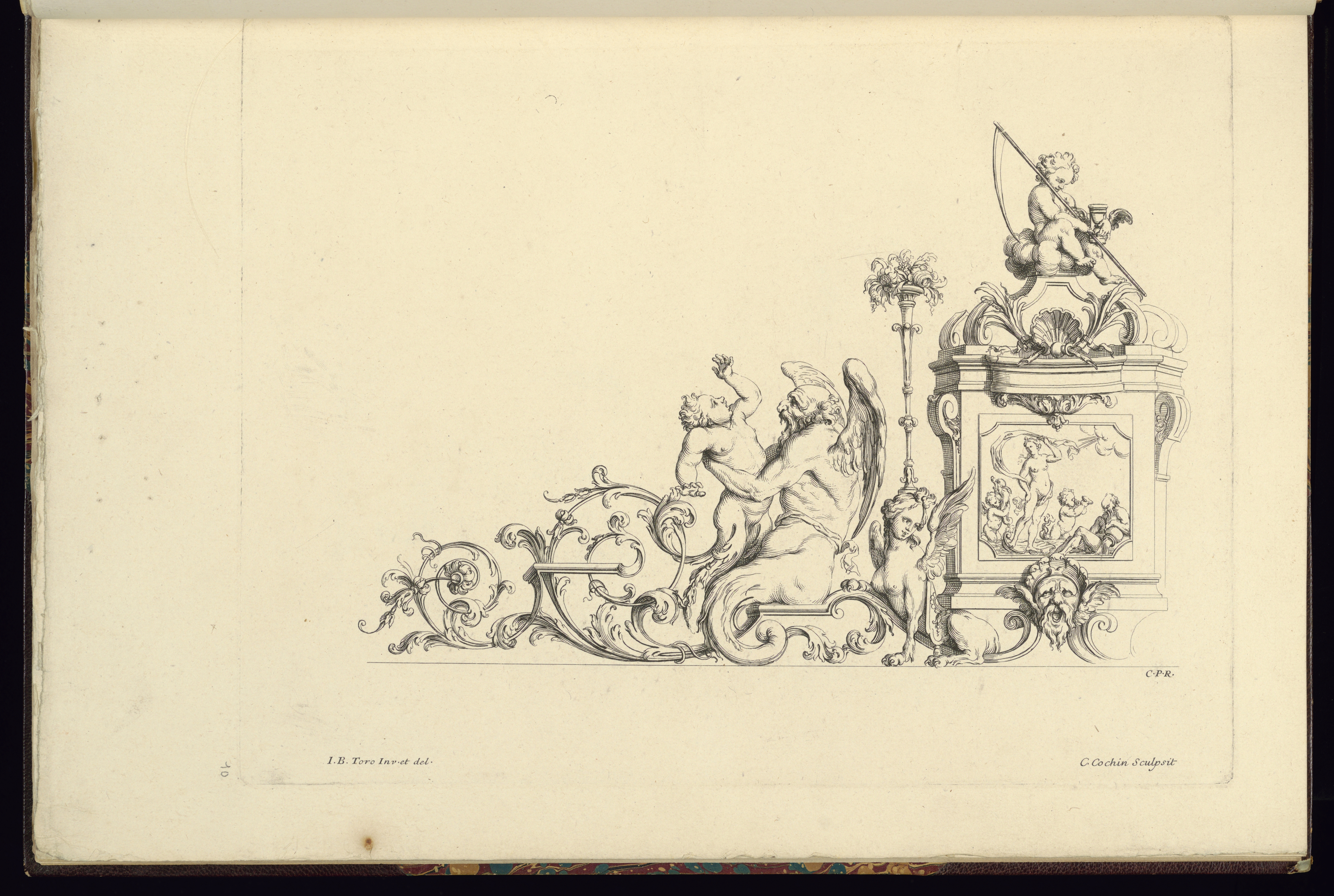 Print, Ornament Design; Designed by Jean Bernard Honoré Toro (French, 1661 - 1731); Print Maker: Charles-Nicolas Cochin the elder (French, 1688 - 1754); Published by Claude-Nicolas Le Pas Dubuisson (French, 1663 – 1733); France; etching on laid paper; Purchased for the Museum by the Advisory Council; 1921-6-411-10