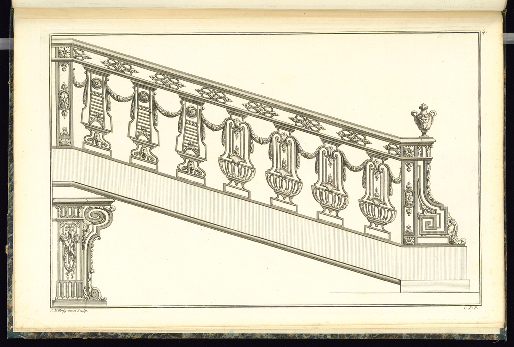 Print, Staircase Balustrade Design; Designed by Jean François Forty (active 1775 – 1790); France; etching and engraving on laid paper; Purchased for the Museum by the Advisory Council; 1921-6-427-16