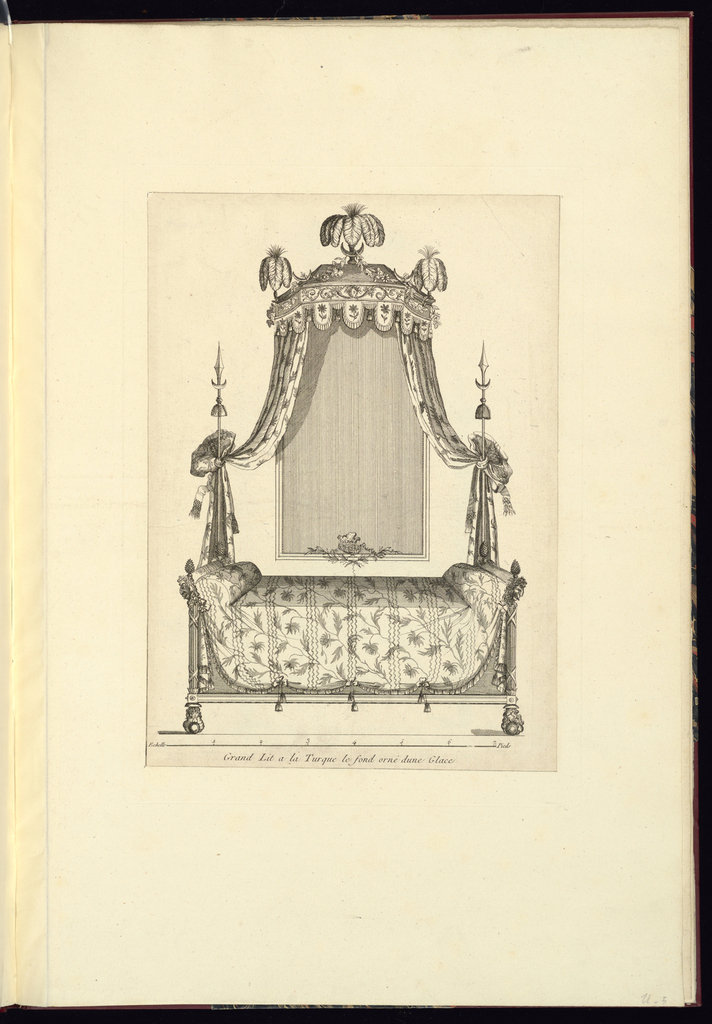 Lettered in plate, lower center: Echelle de 1 2 3 4 5 6 7 Pieds/ Grand Lit a la Turque le fond orné dune Glace; inscribed in graphite lower right margin: N-5