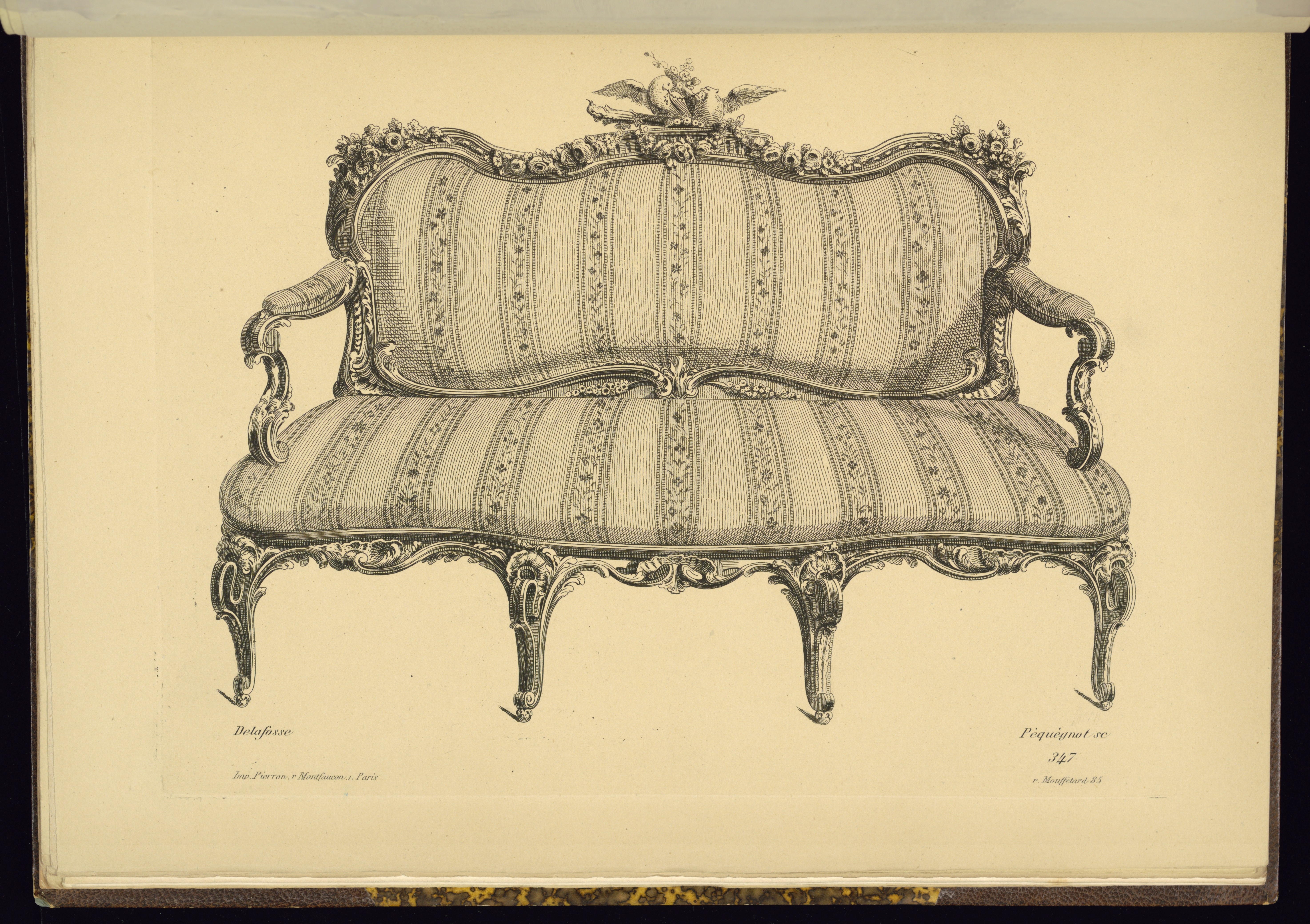 Print, Design for a Sofa; Designed by Jean-Charles Delafosse (French, 1734–1791); Printed by Pierron (French, active 1849 – 1866); Print Maker: Auguste Péquégnot (French, 1819 – 1878); France; etching on paper; Purchased for the Museum by the Advisory Council; 1921-6-456-34