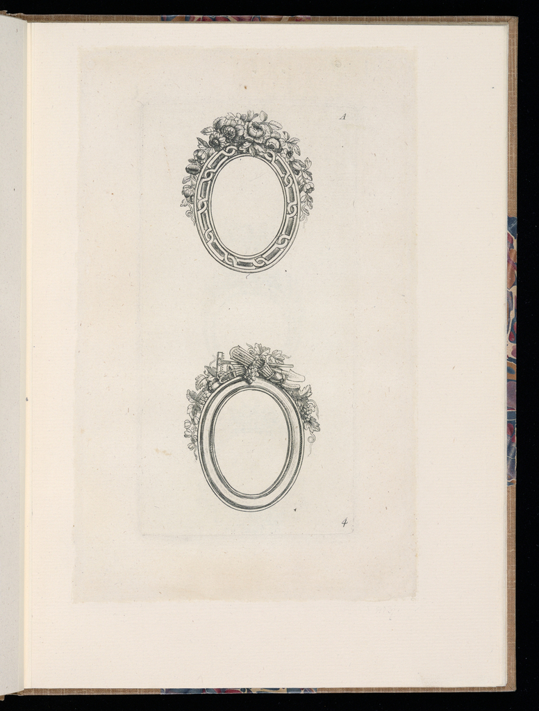 Print, Ornamental Medallion Designs; Designed by Théodore Bertren (active in France, 18th century); France; etching on paper; Purchased for the Museum by the Advisory Council; 1921-6-458-11
